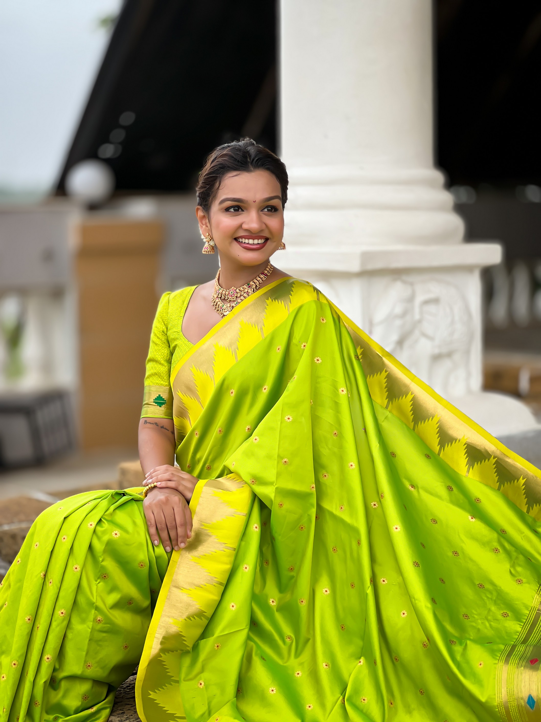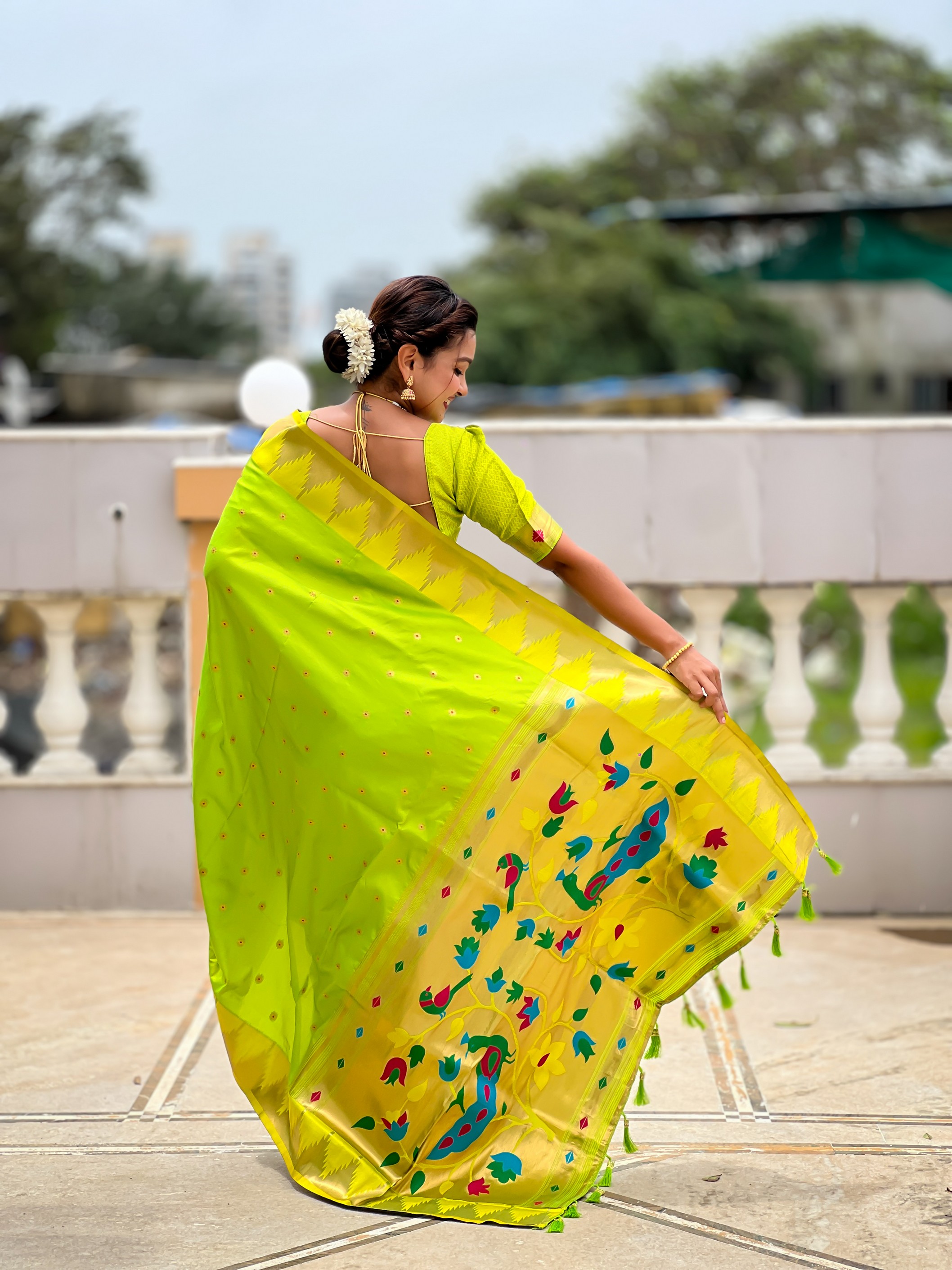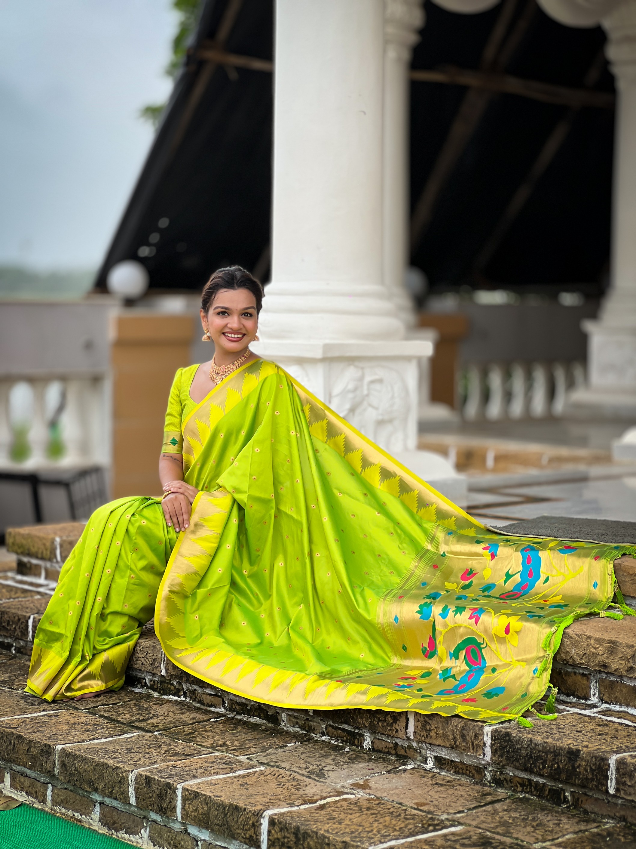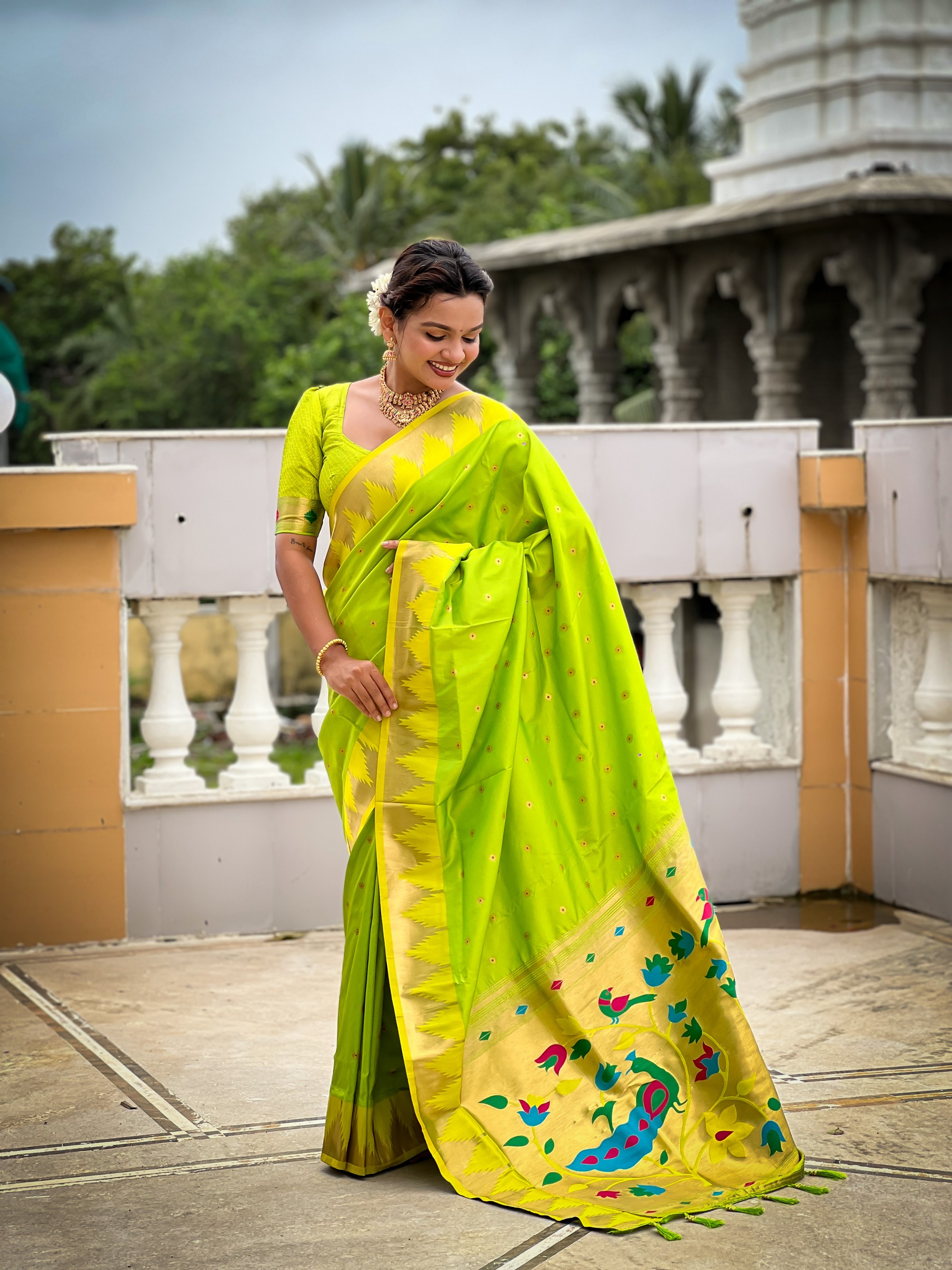 Parrot Green Color Sophisticated Paithani Silk Fabric Woven Jacquard Meenakari Designer Saree
