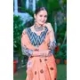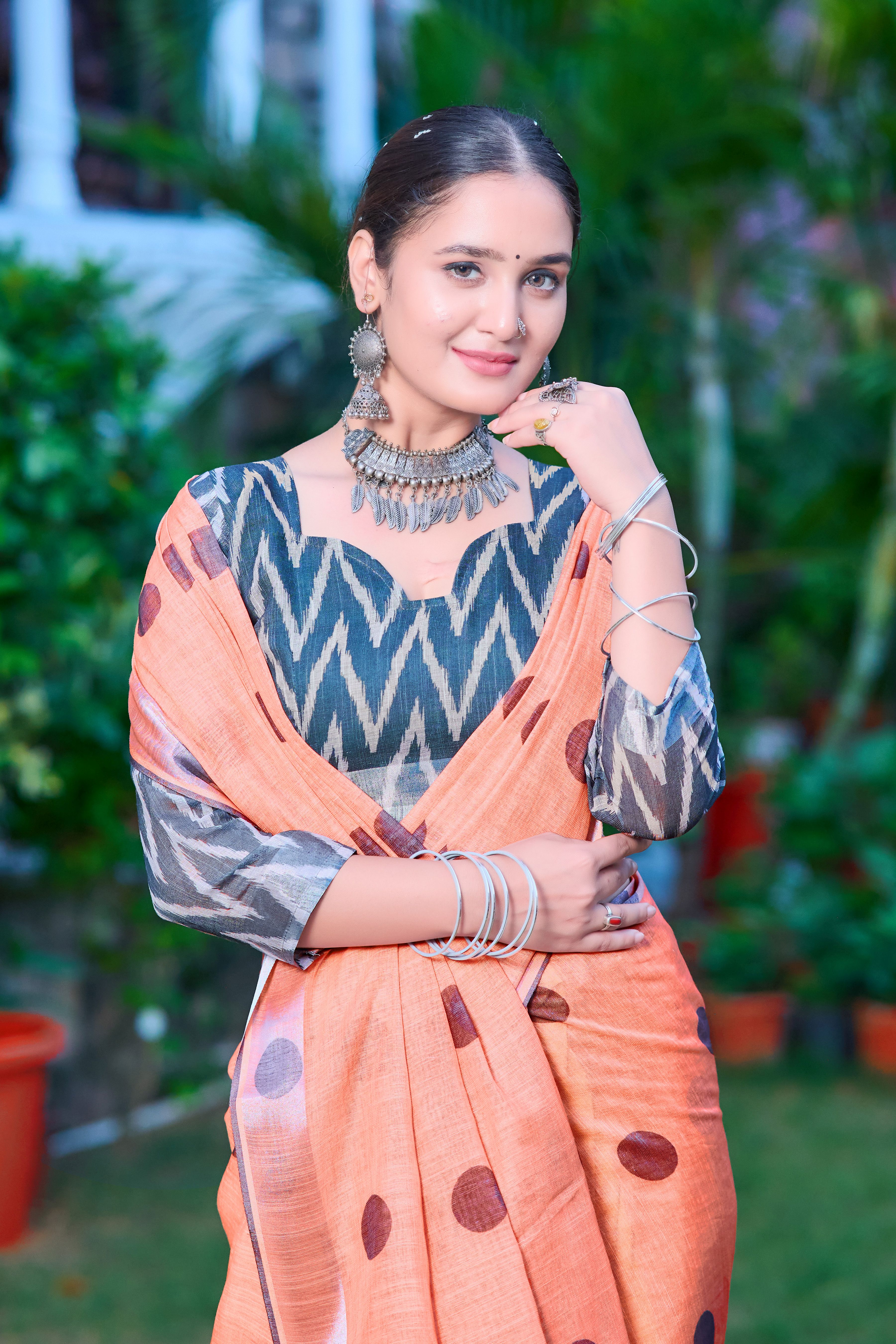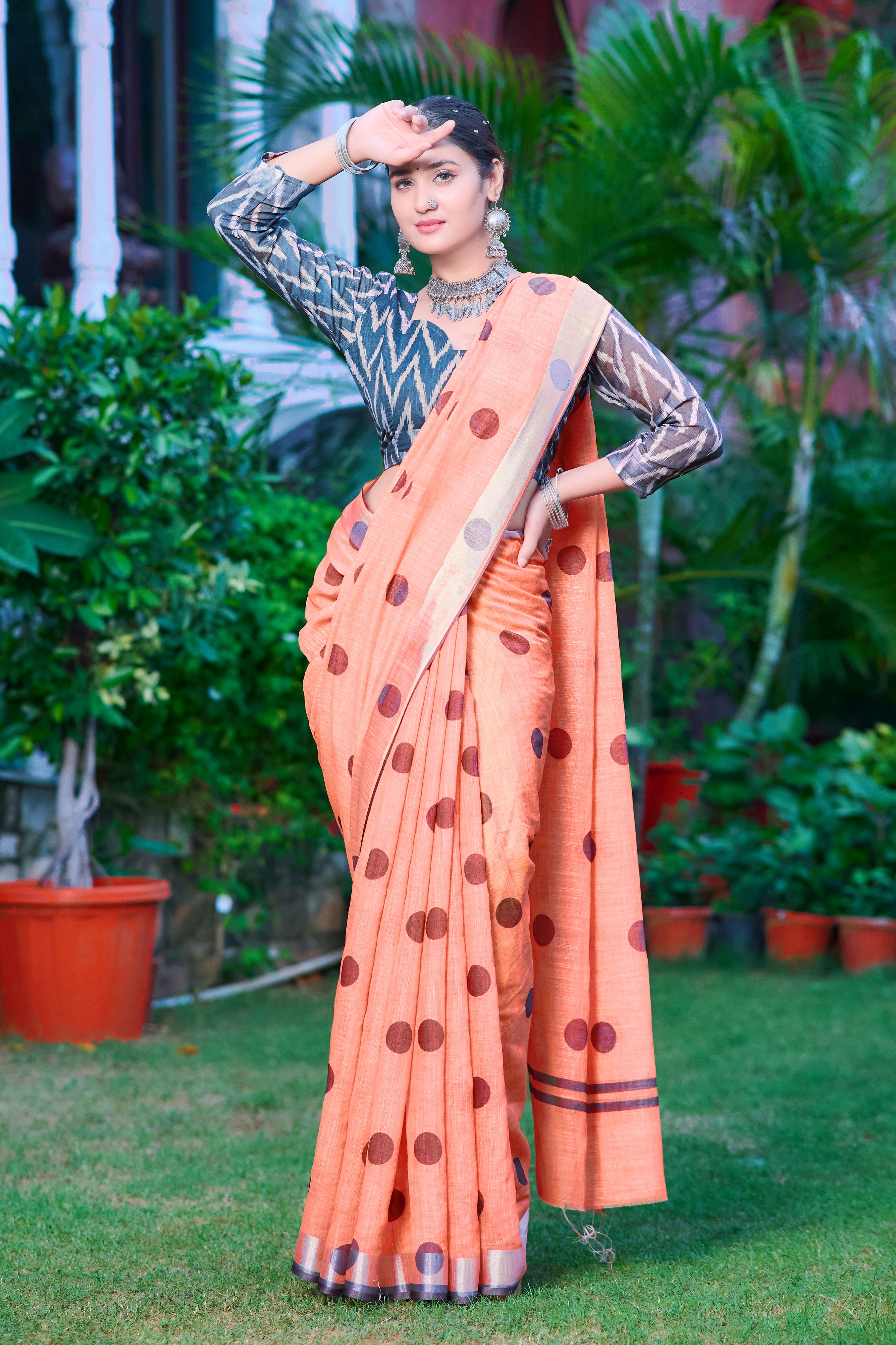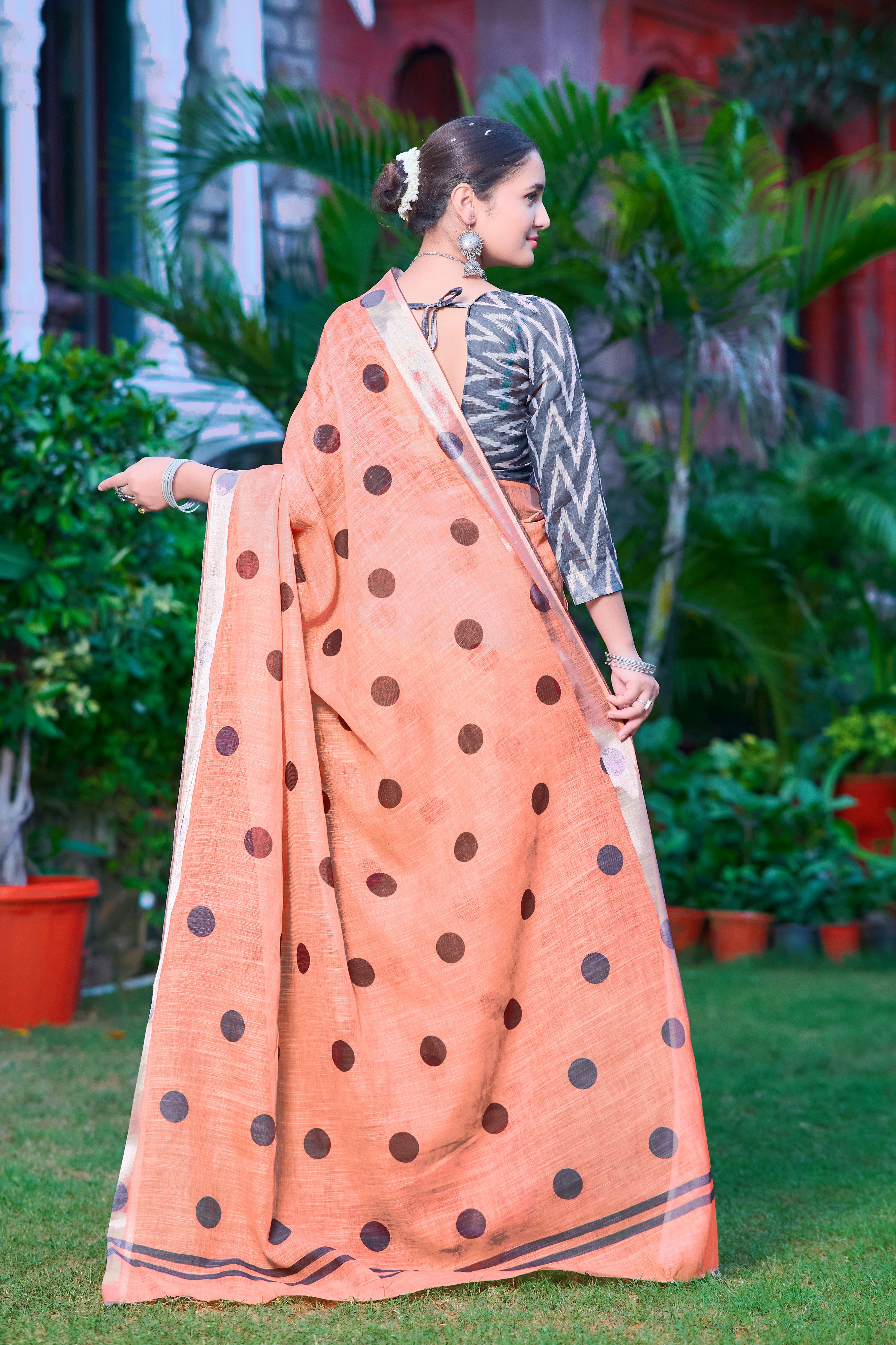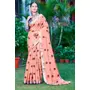 Peach Color Linen Cotton Fabric Designer Printed Ethnic Festive Saree
