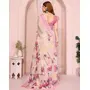 Peach Color Linen Cotton Fabric Designer Printed Formal Looks Sophisticated Saree