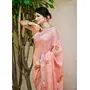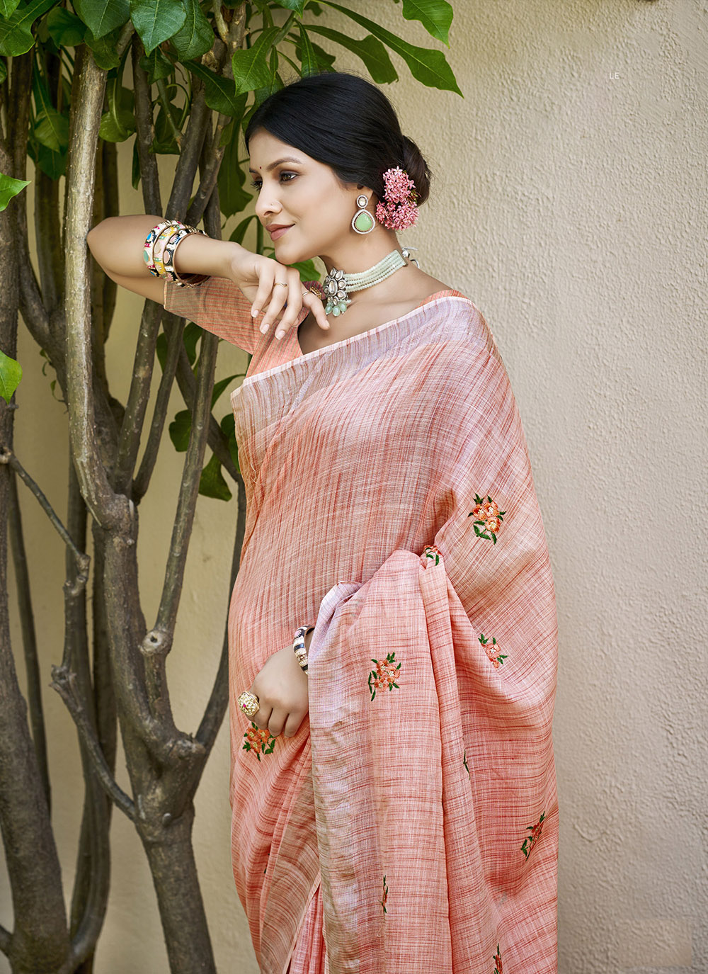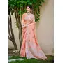 Peach Color Linen Fabric Beautifully Embroidered Ethnic Saree
