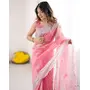 Pink Color Art Silk Fabric Designer Embroidered Saree For Ceremonial Looks