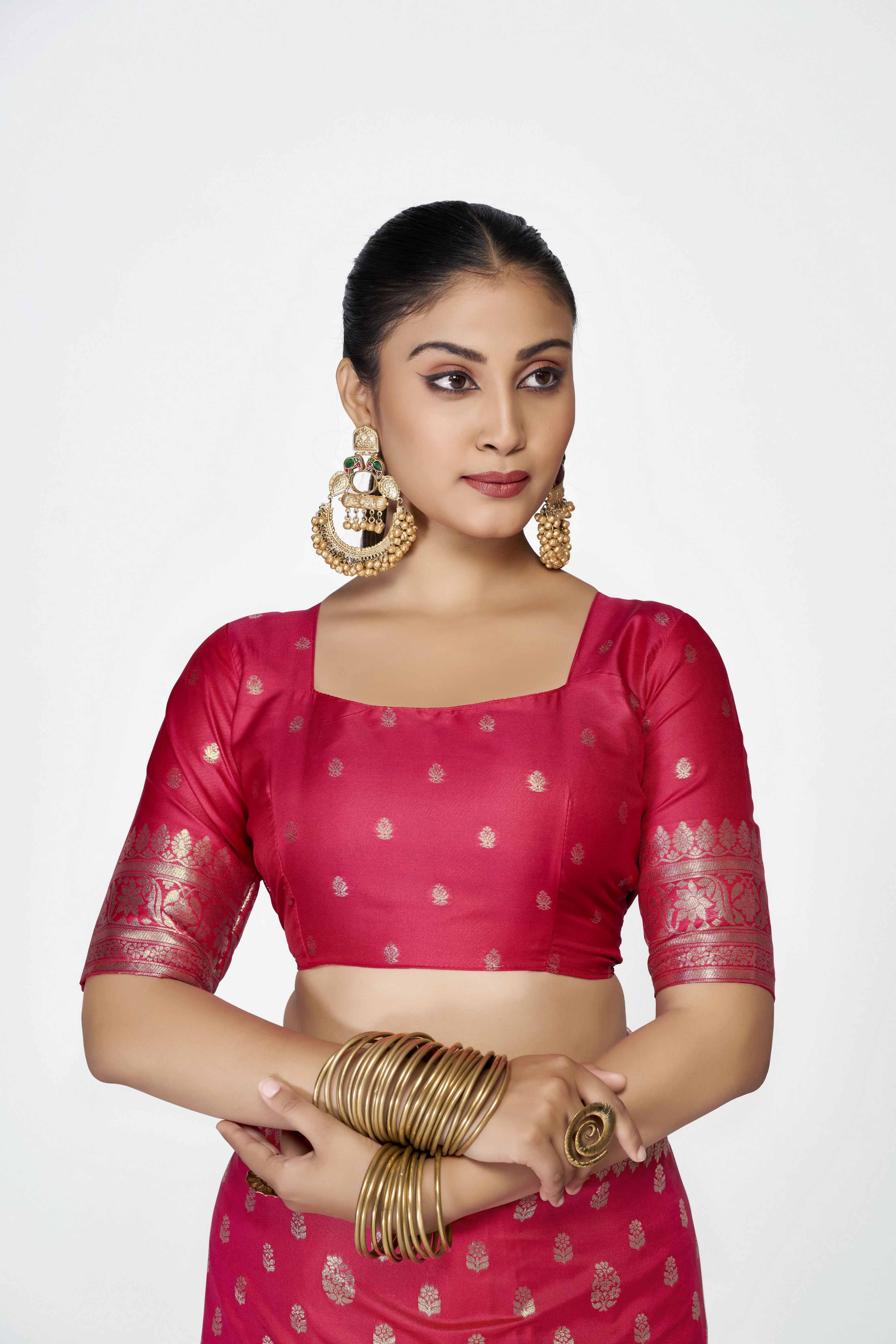 Pink Color Banarasi Silk Fabric Woven Jari Butti Designer Celebrity Fancy Saree