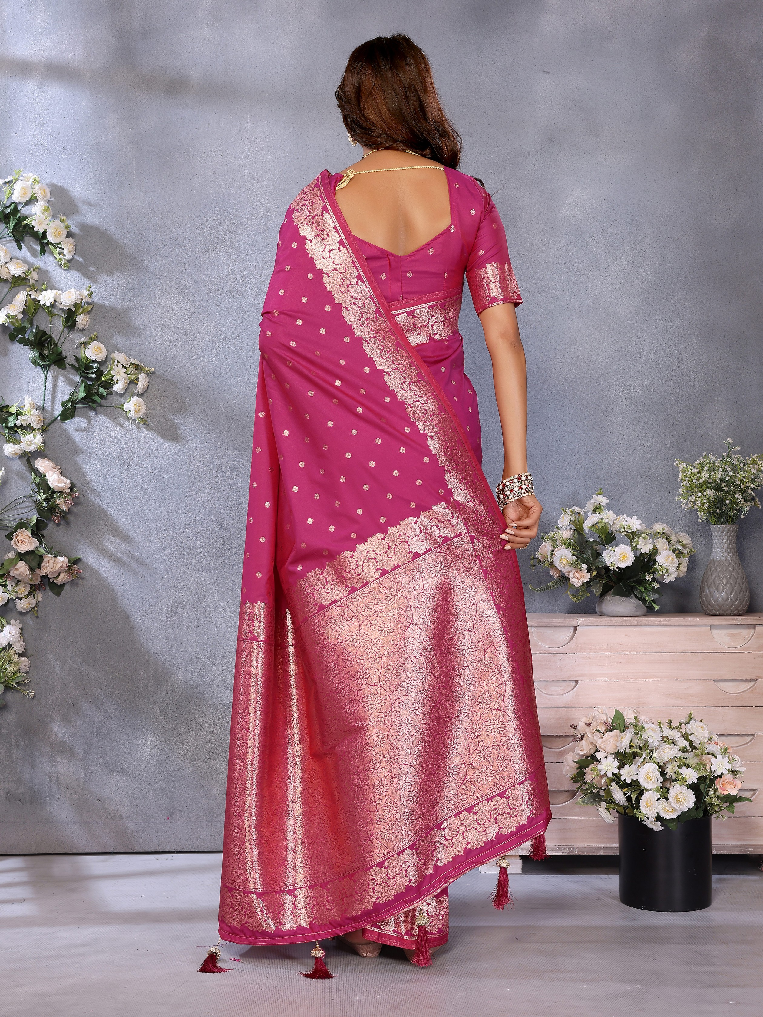 Pink Color Banarasi Silk Jacquard Weving Designer Trendy Partywear Saree