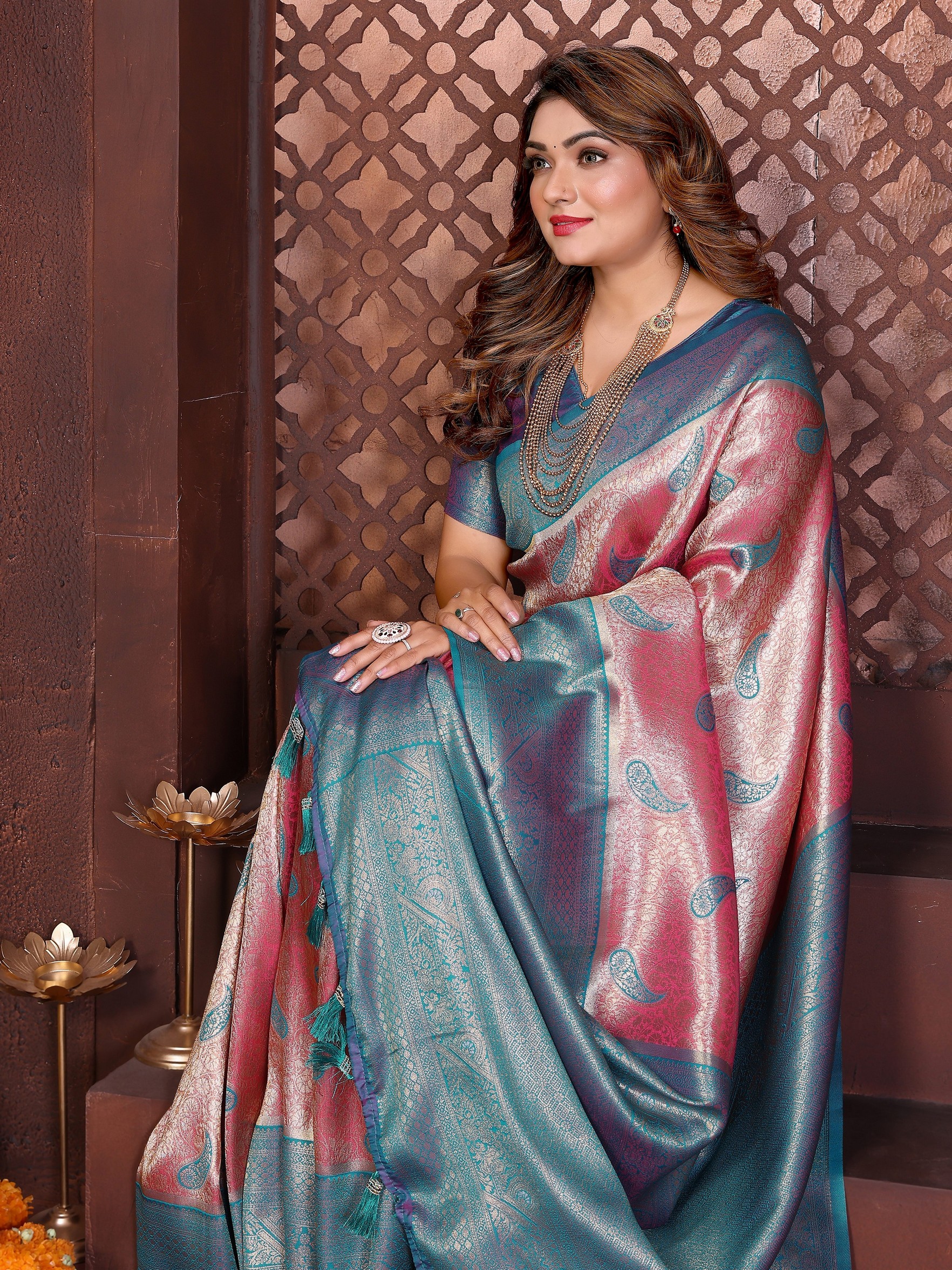 Pink Color Banarasi Tissue Silk Woven Rich Paithani Designer Ceremonial saree