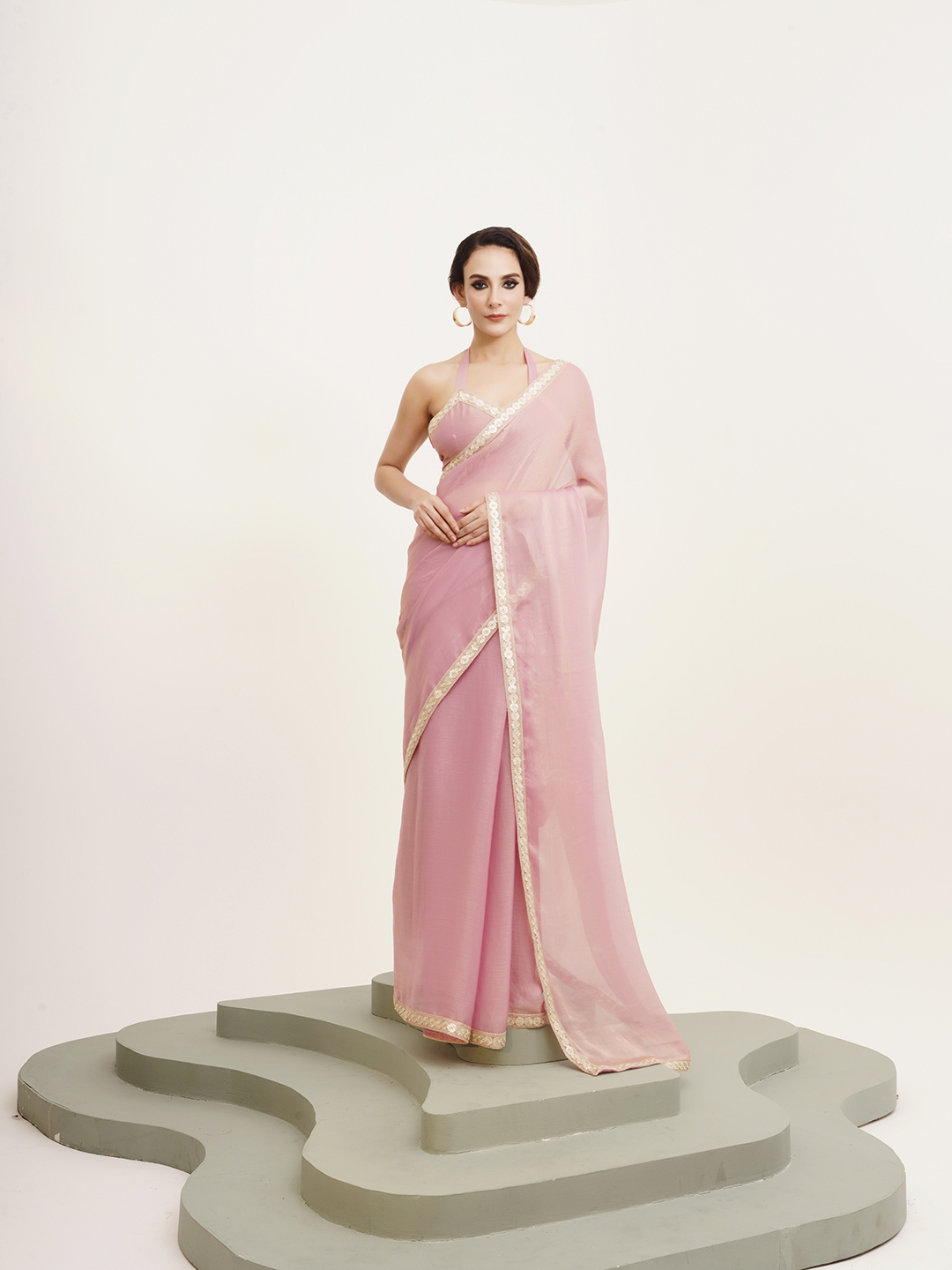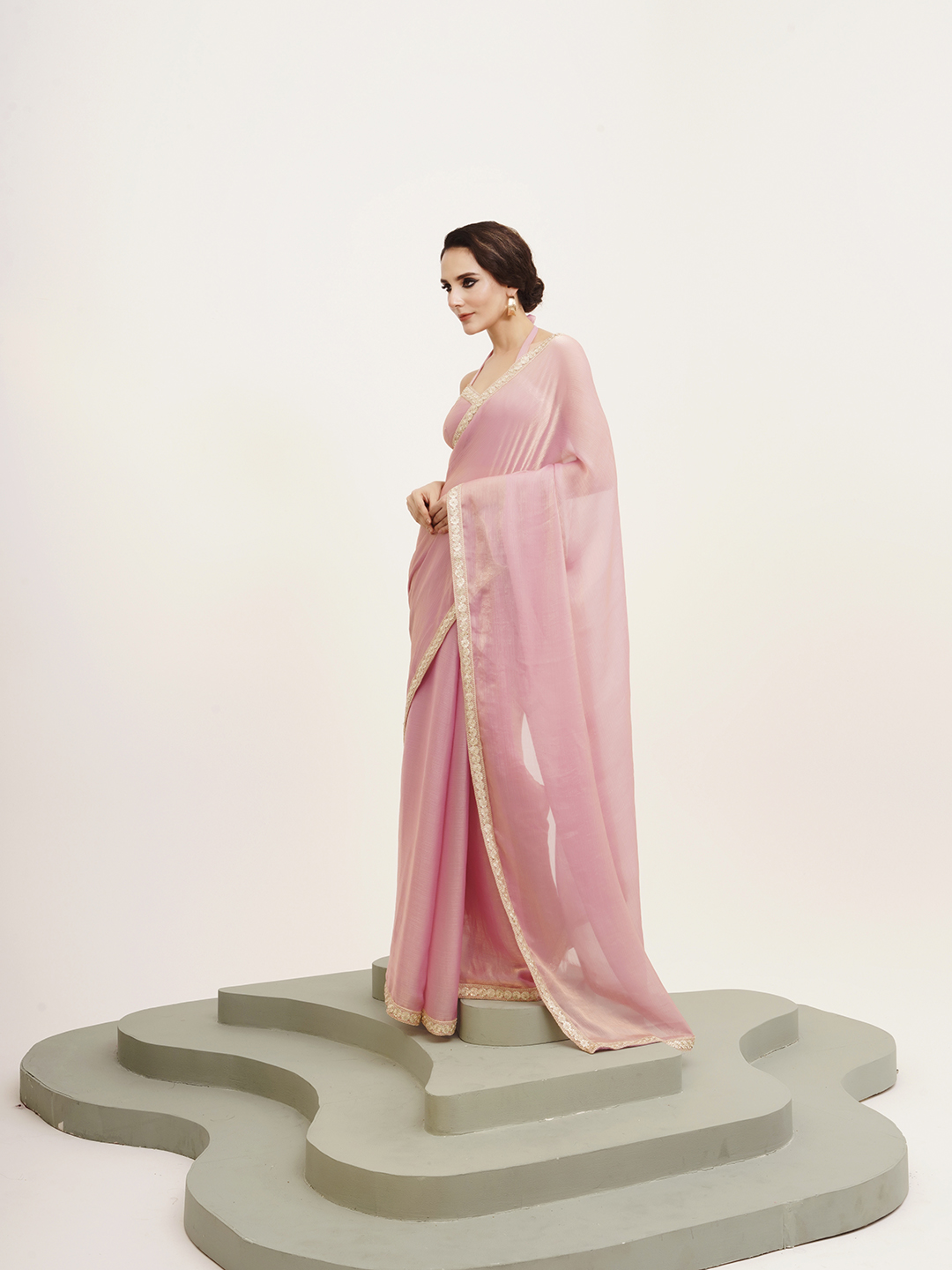 Pink Color Beautiful Partywear Sequinned Chiffon Saree