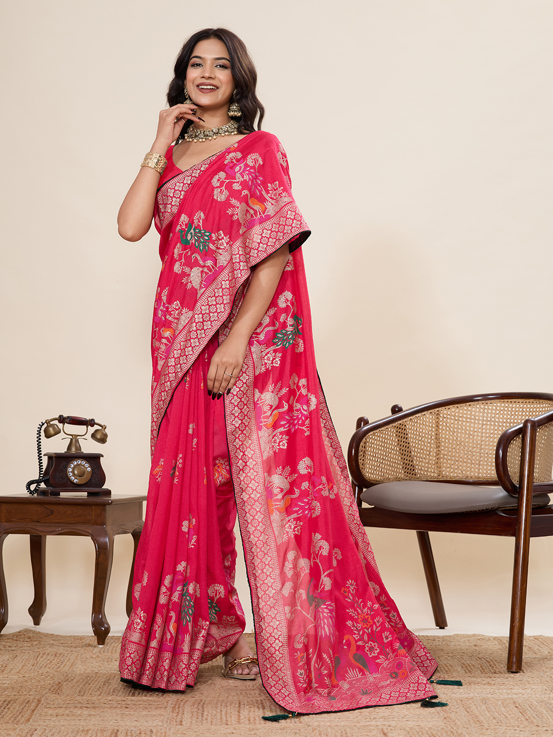 Pink Color Blended Cotton Fabric Designer Table Printed Saree