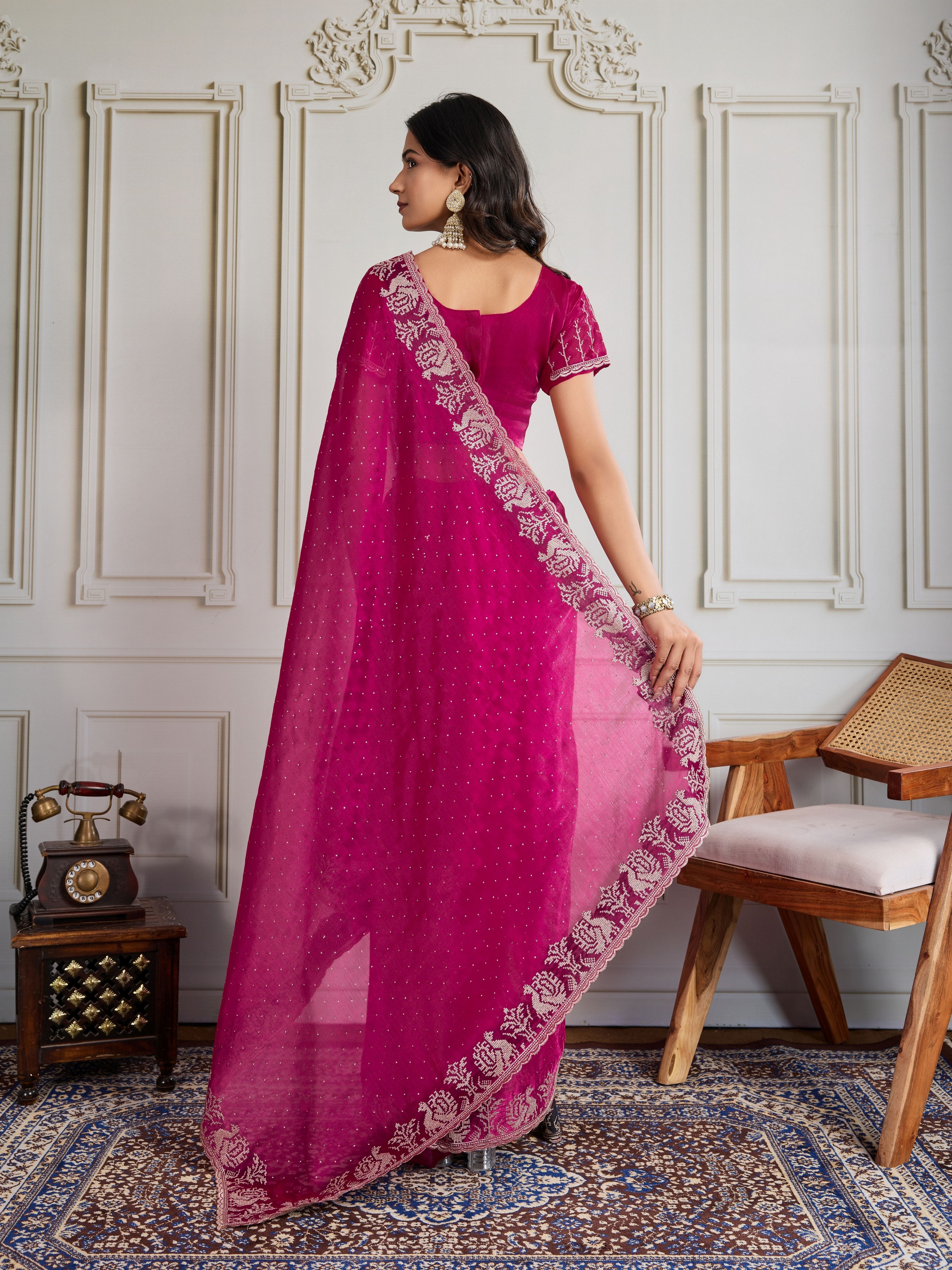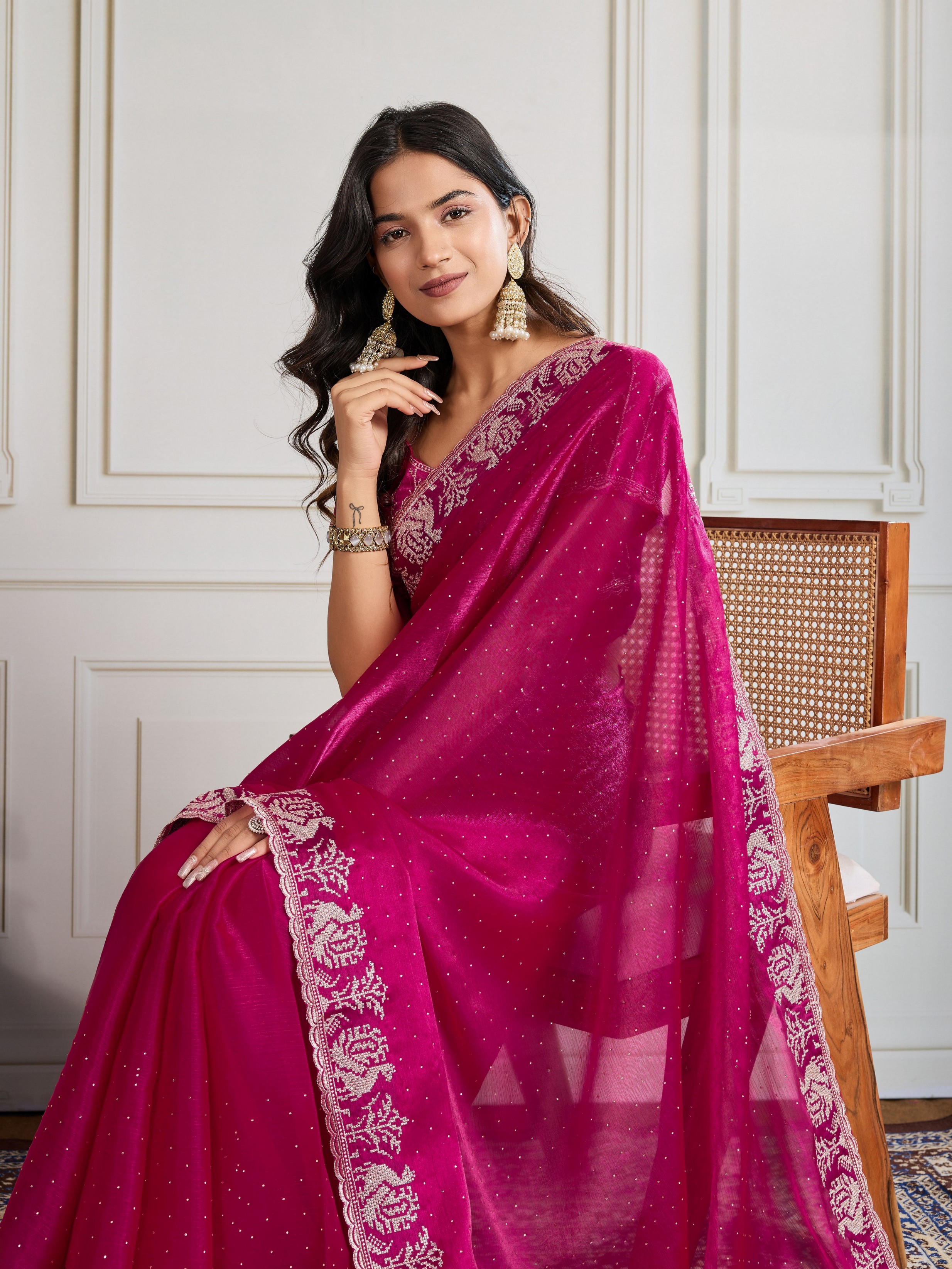 Pink Color Burberry Silk Fabric Graceful Partywear Saree