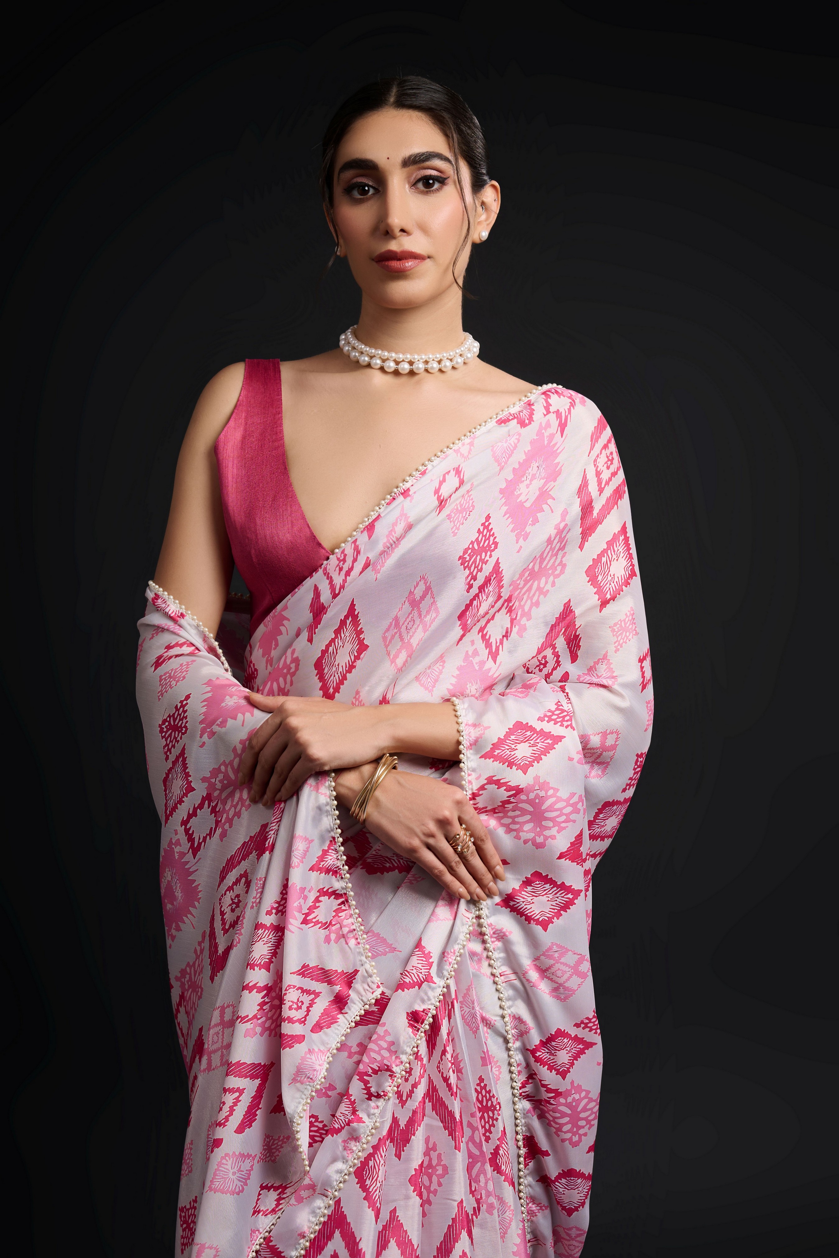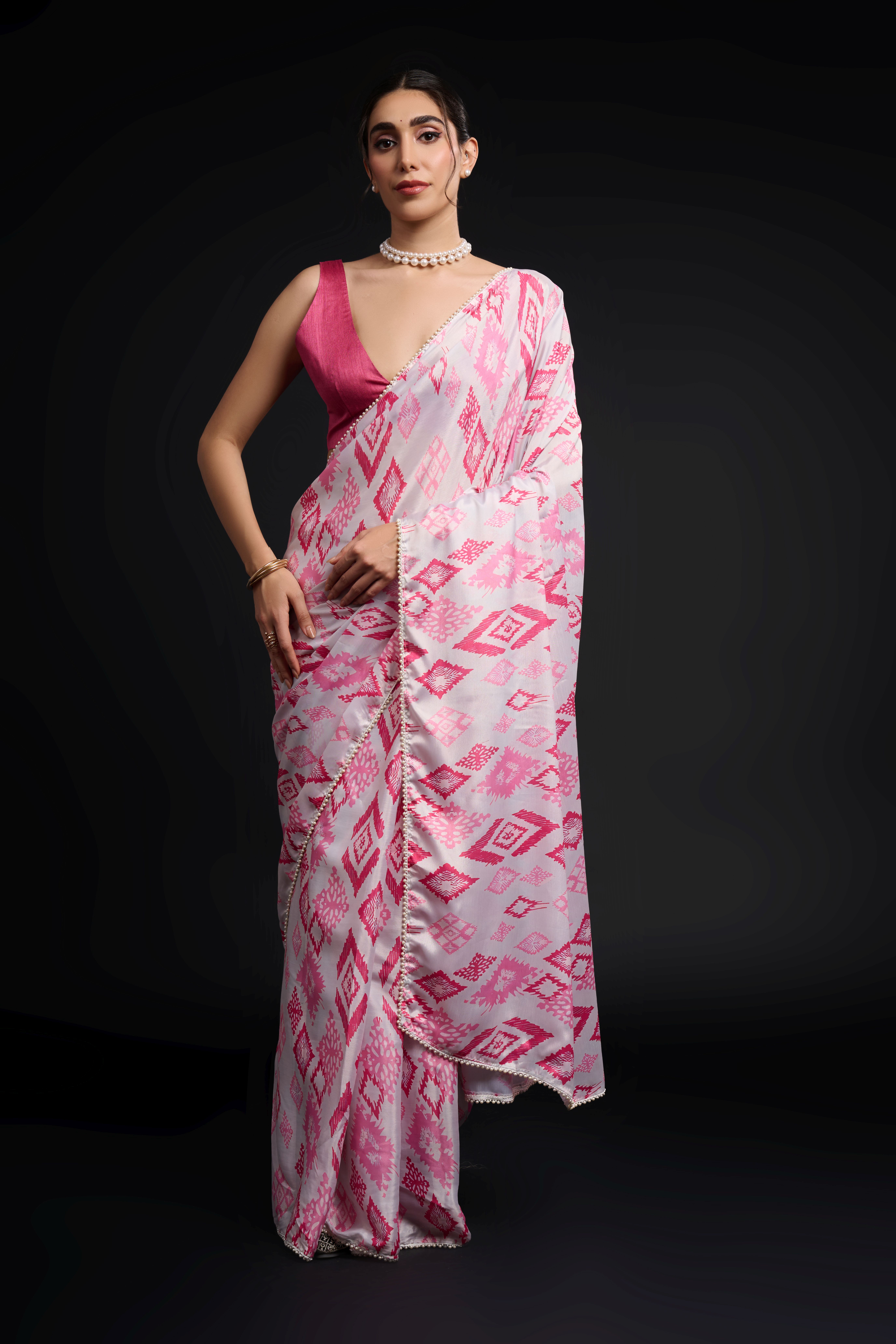 Pink Color Chinon Fabric Designer Digital Printed Ready To Wear Saree
