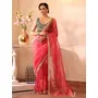 Pink Color Organza Fabric Heavy Ceremonial Wear Bollywood Saree