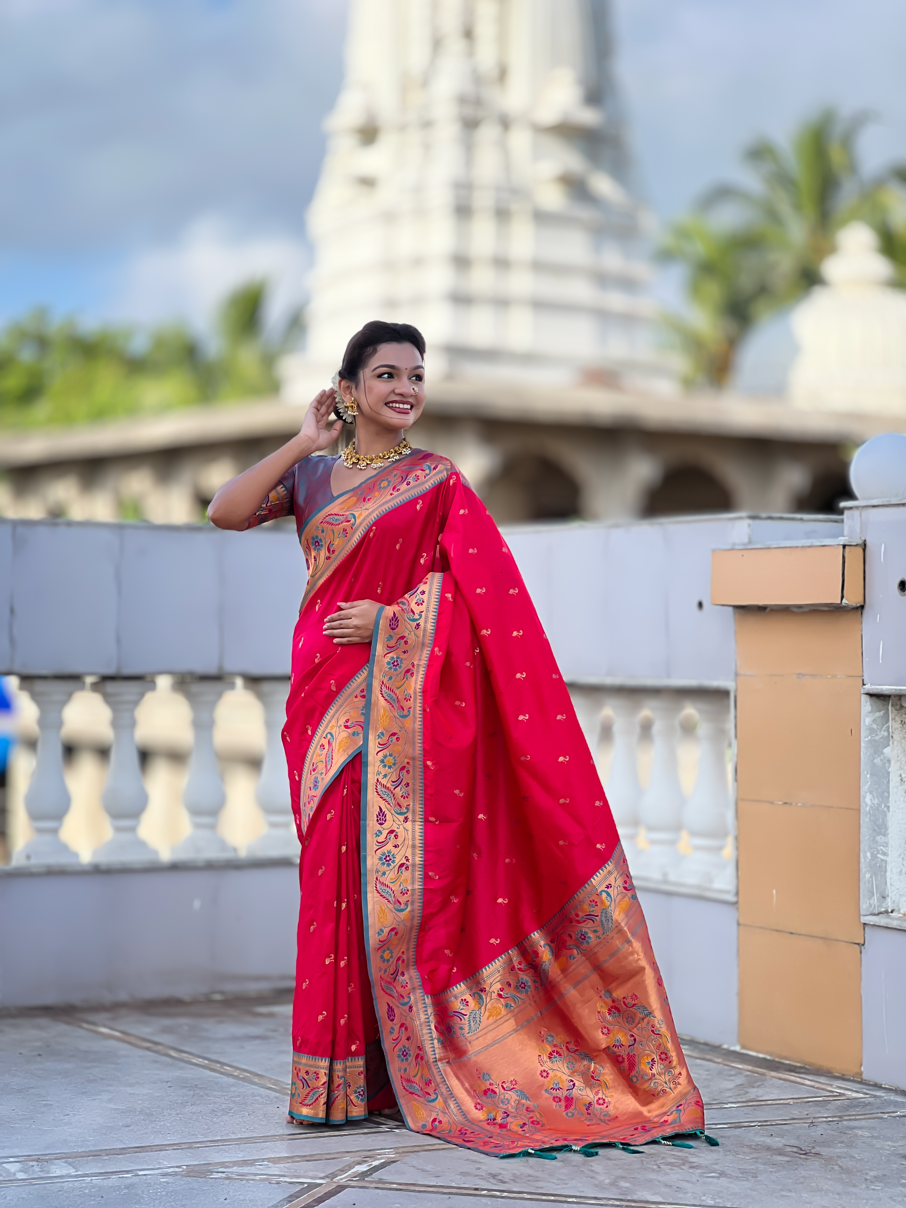 Attractive These Party Wear Saree in Fine Colored.These Saree Are Paithani Silk And Blouse is Fabricated On Paithani Silk.Its Beautified With Weaving Jacquard Meenakari Designer.