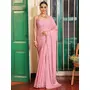 Pink Color Satin Fabric Fancy Designer Swarovski Work Partywear Saree