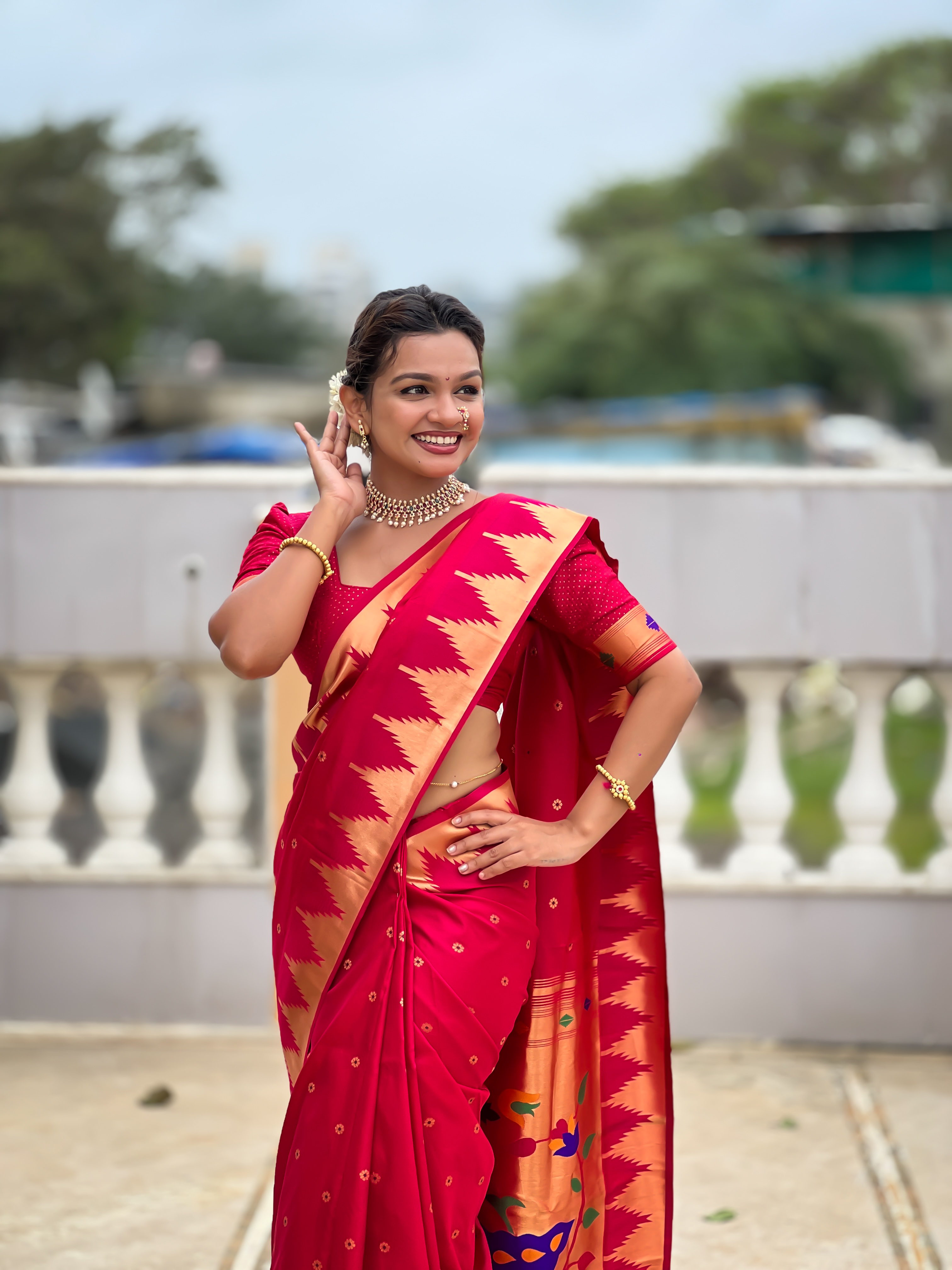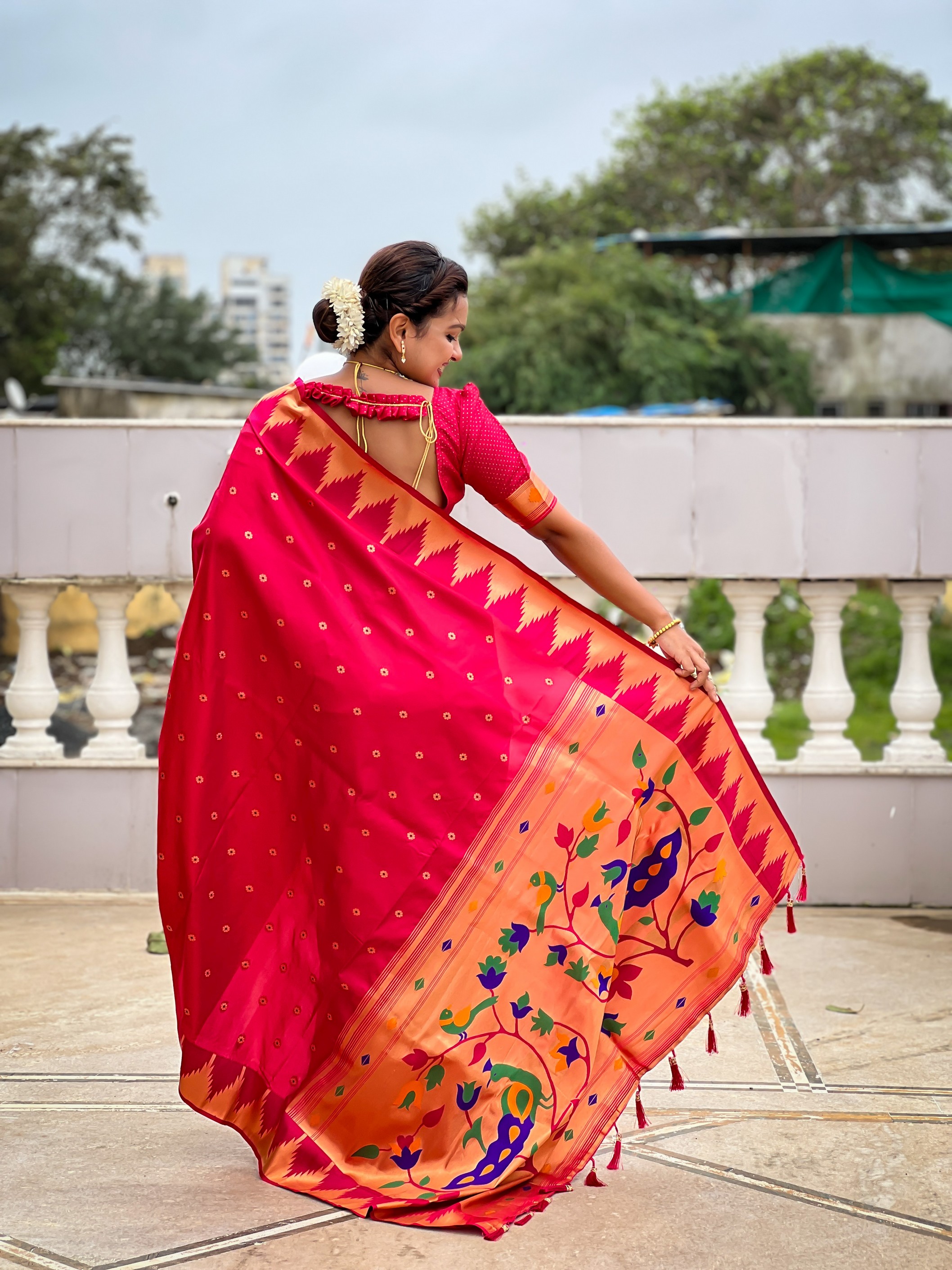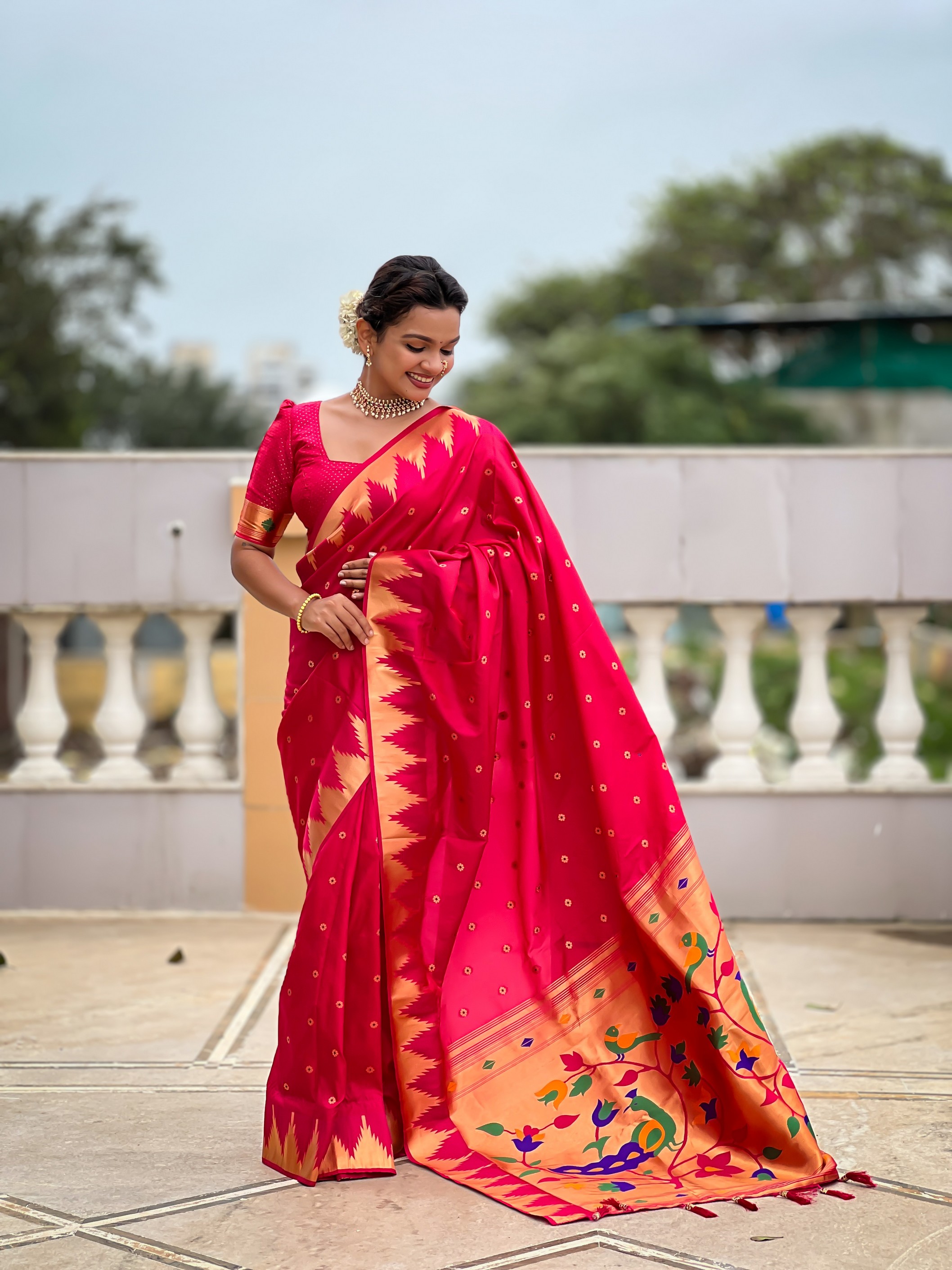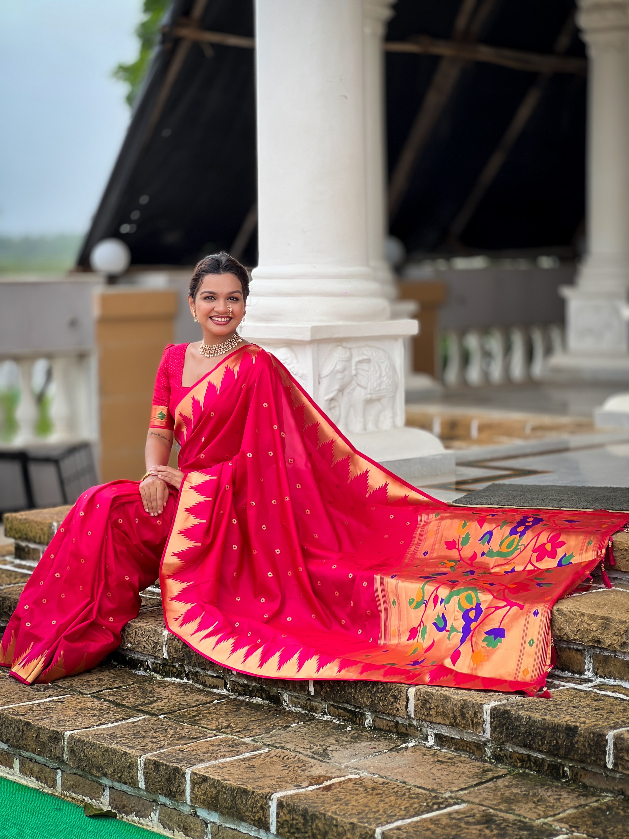 Pink Color Sophisticated Paithani Silk Fabric Woven Jacquard Meenakari Designer Saree