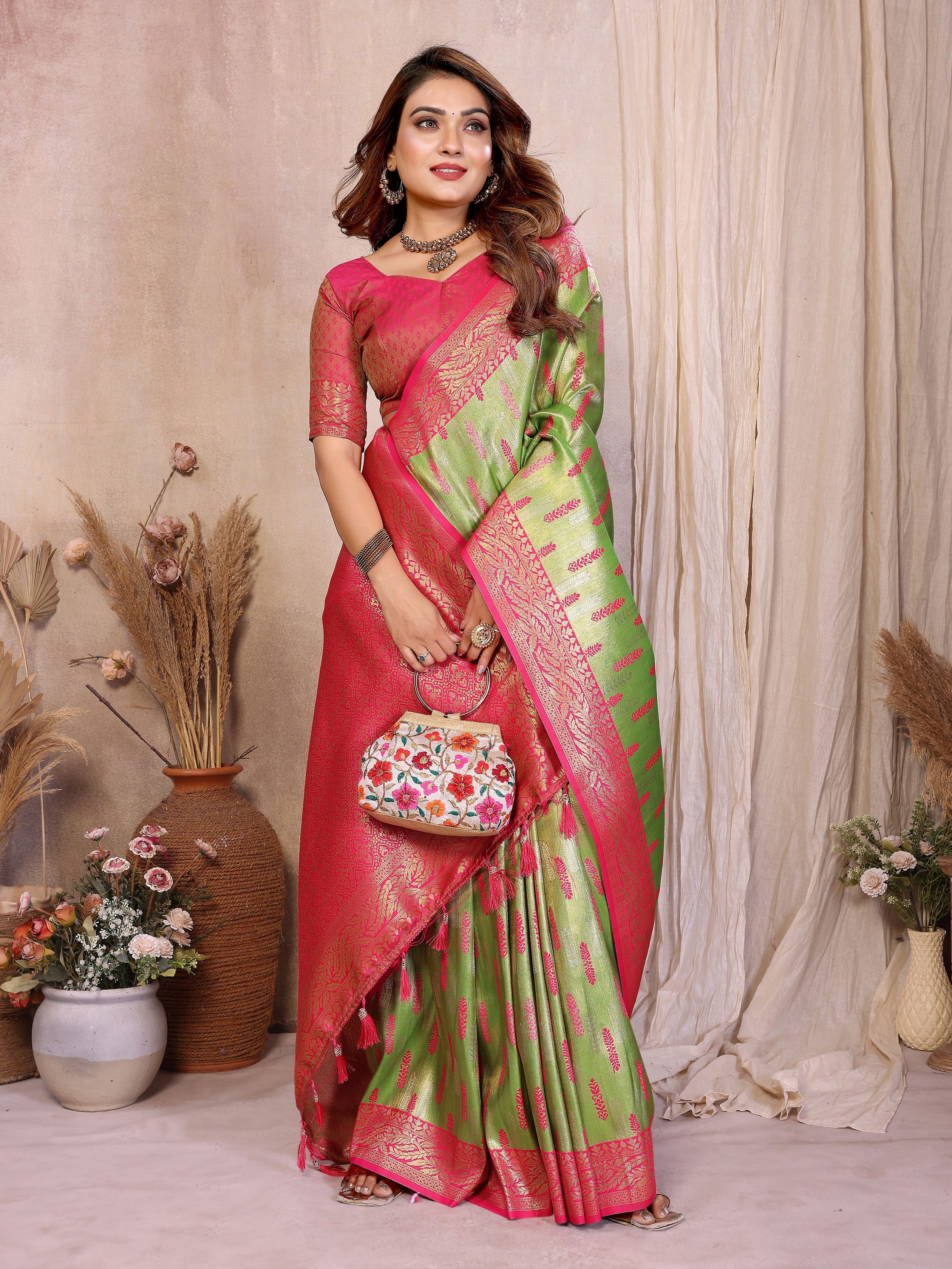 Pista Color Beautiful Banarasi Tissue Silk Rich Sophisticated Saree