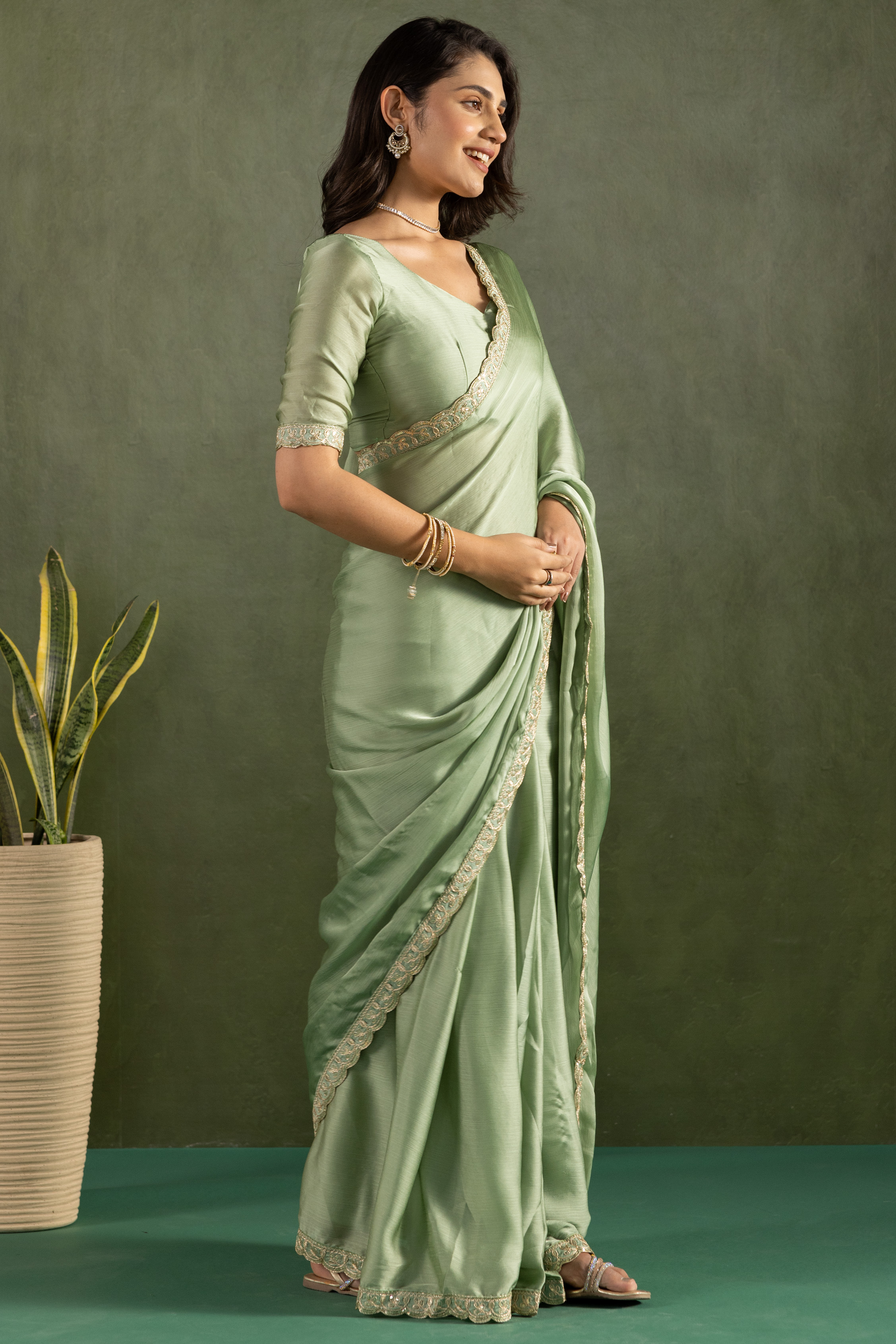 Pista Color Chiffon Fabric Ready To Wear Saree For Graceful Bollywood Style Saree