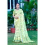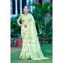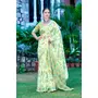 Pista Color Linen Cotton Fabric Designer Printed Ethnic Festive Saree