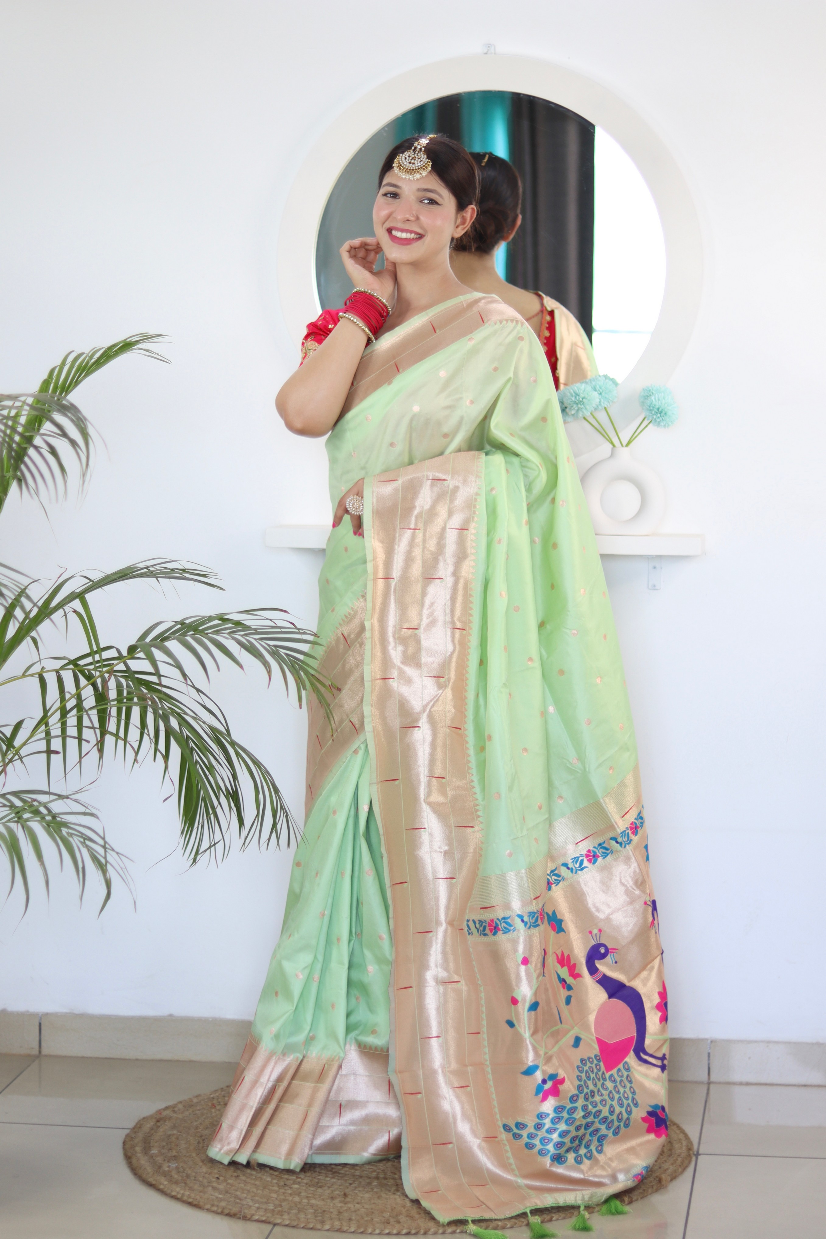Pista Color Paithani Silk Saree With Beautiful Festive Looks