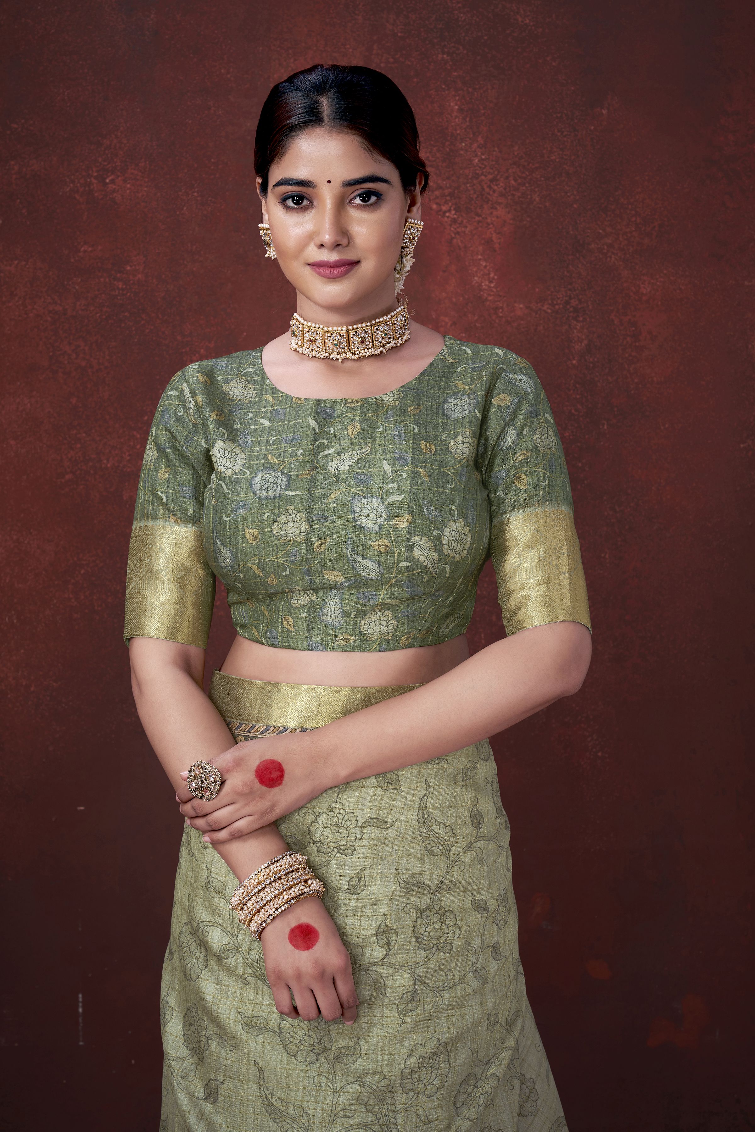 Pista Green Color Habotai Silk Fabric Jacquard Designer Ethnic Printed Saree