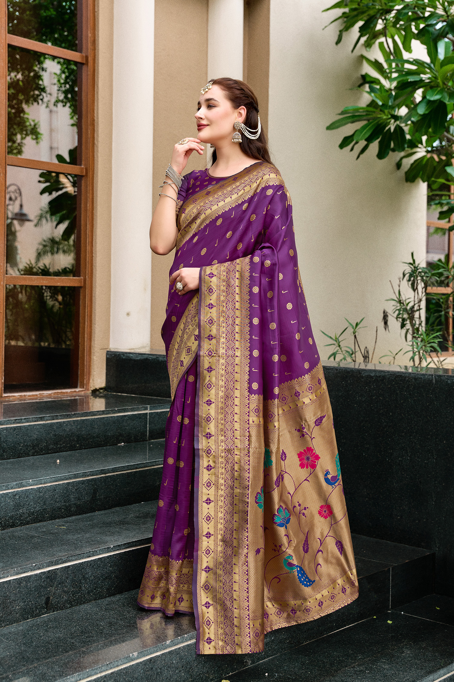Purple Color Beautiful Silk Blended Woven Zari Designer Ceremonial Saree