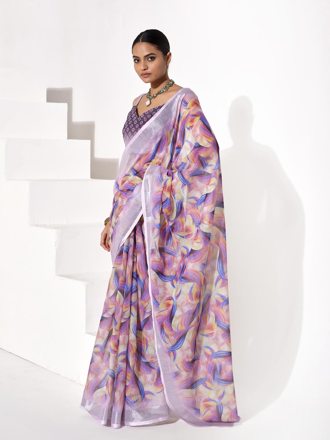 Purple Color Cotton Blend Fabric Beautiful Designer Printed Saree