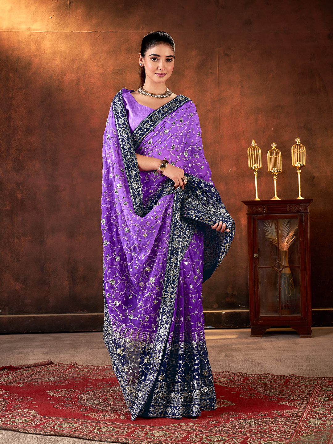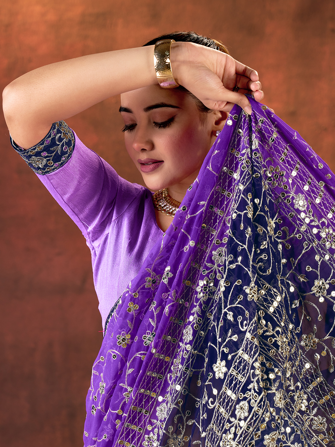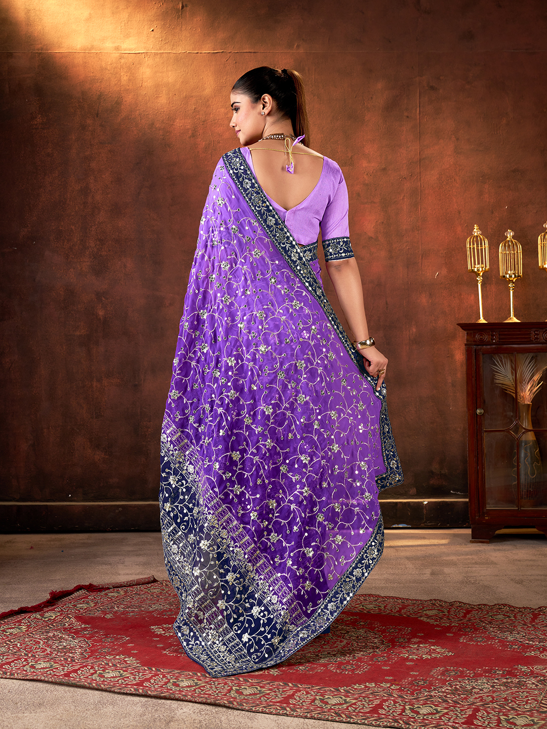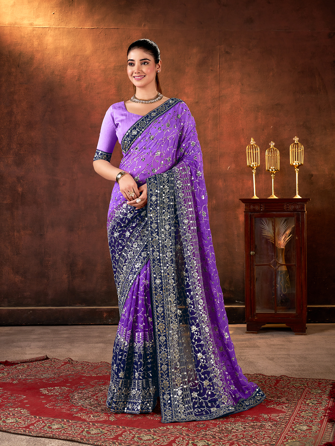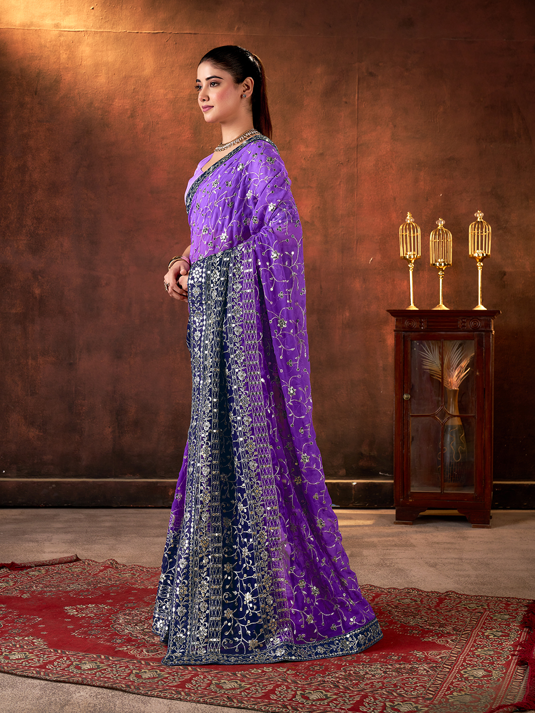 Purple Color Designer Georgette Fabric Designer Sequins Embroidery Work Saree