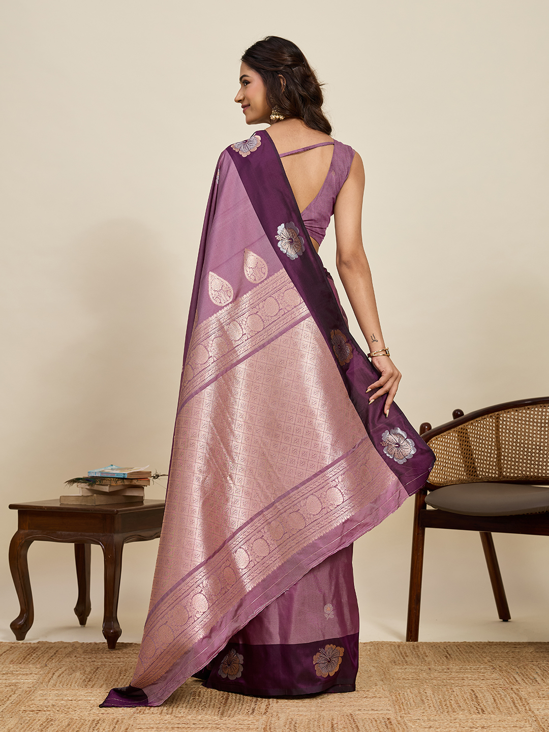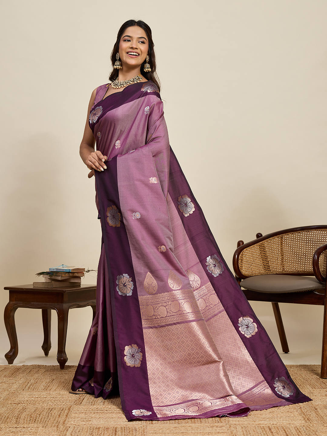 Purple Color Soft Silk Fabric Woven Jari Designer Ethnic Indian Saree