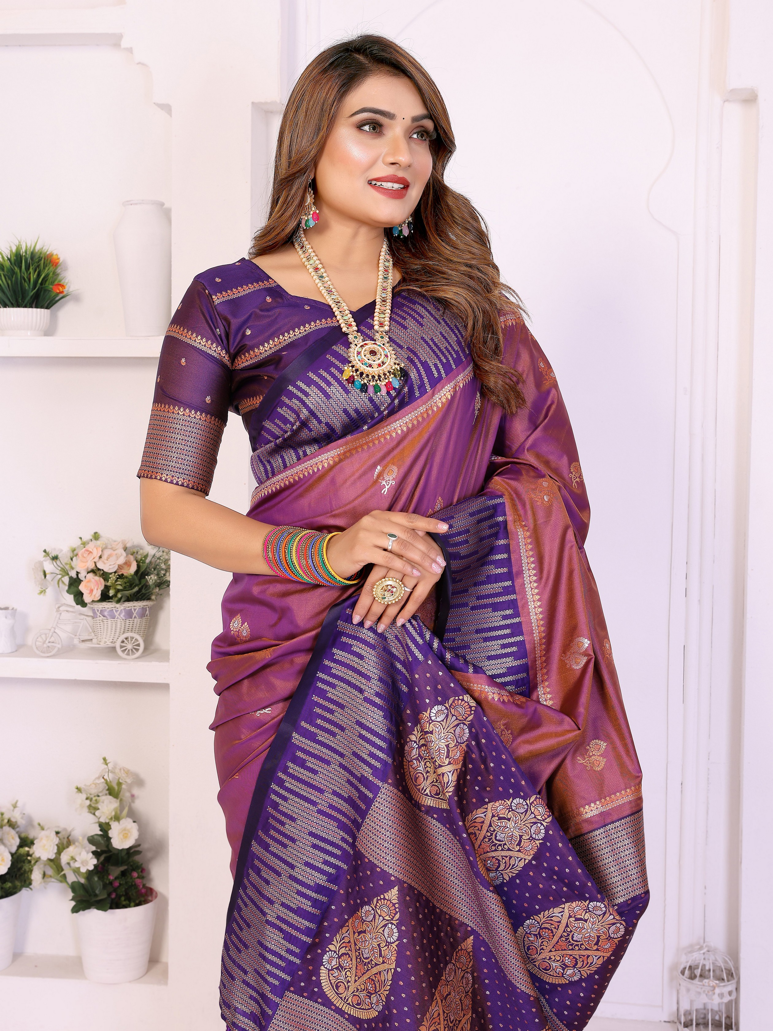 Purple Color South Soft Silk Fabric Woven Rich Pallu Designer Ceremonial Saree