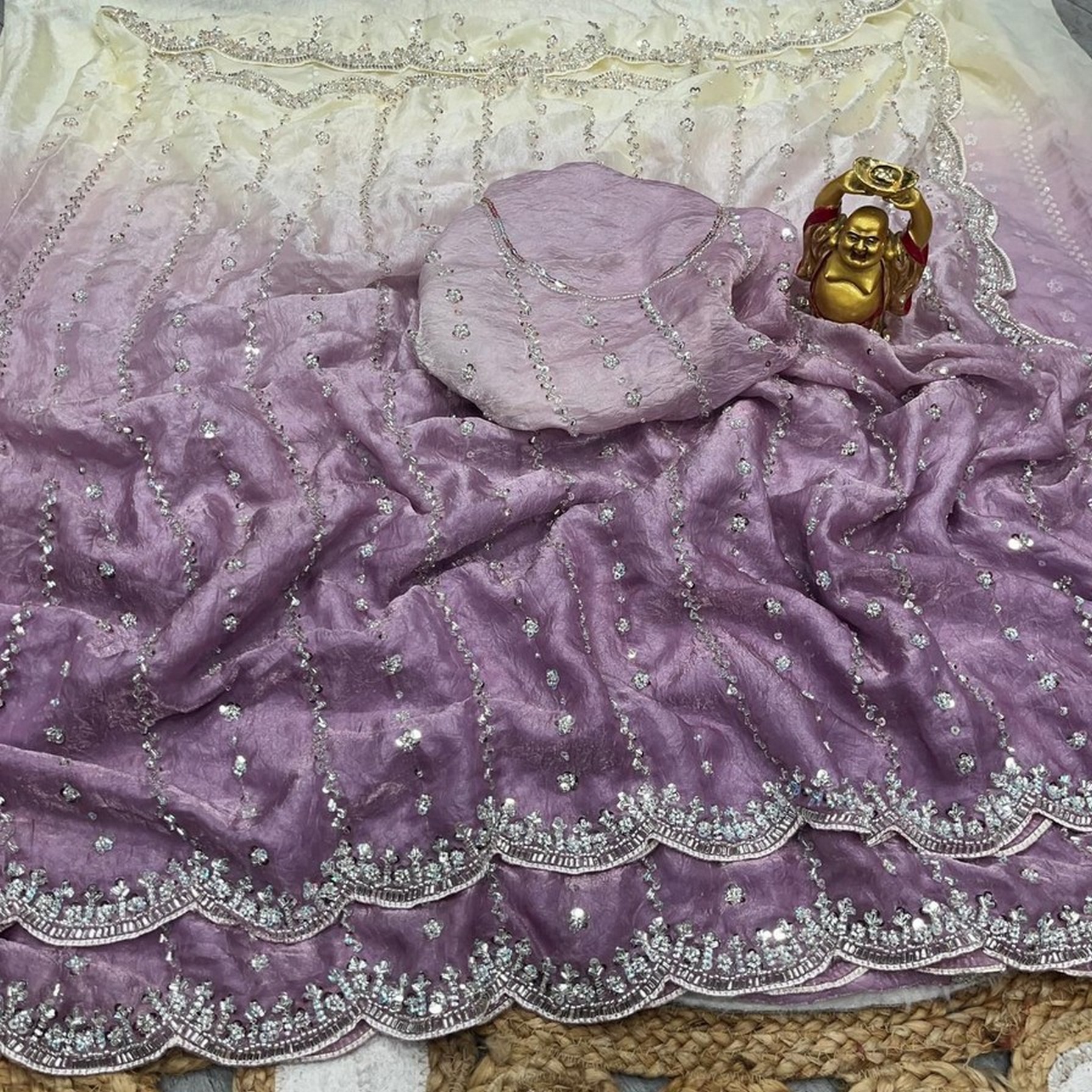 Purple Color Trendy Fendy Satin Fabric Pedding With Beads Hand Work Saree