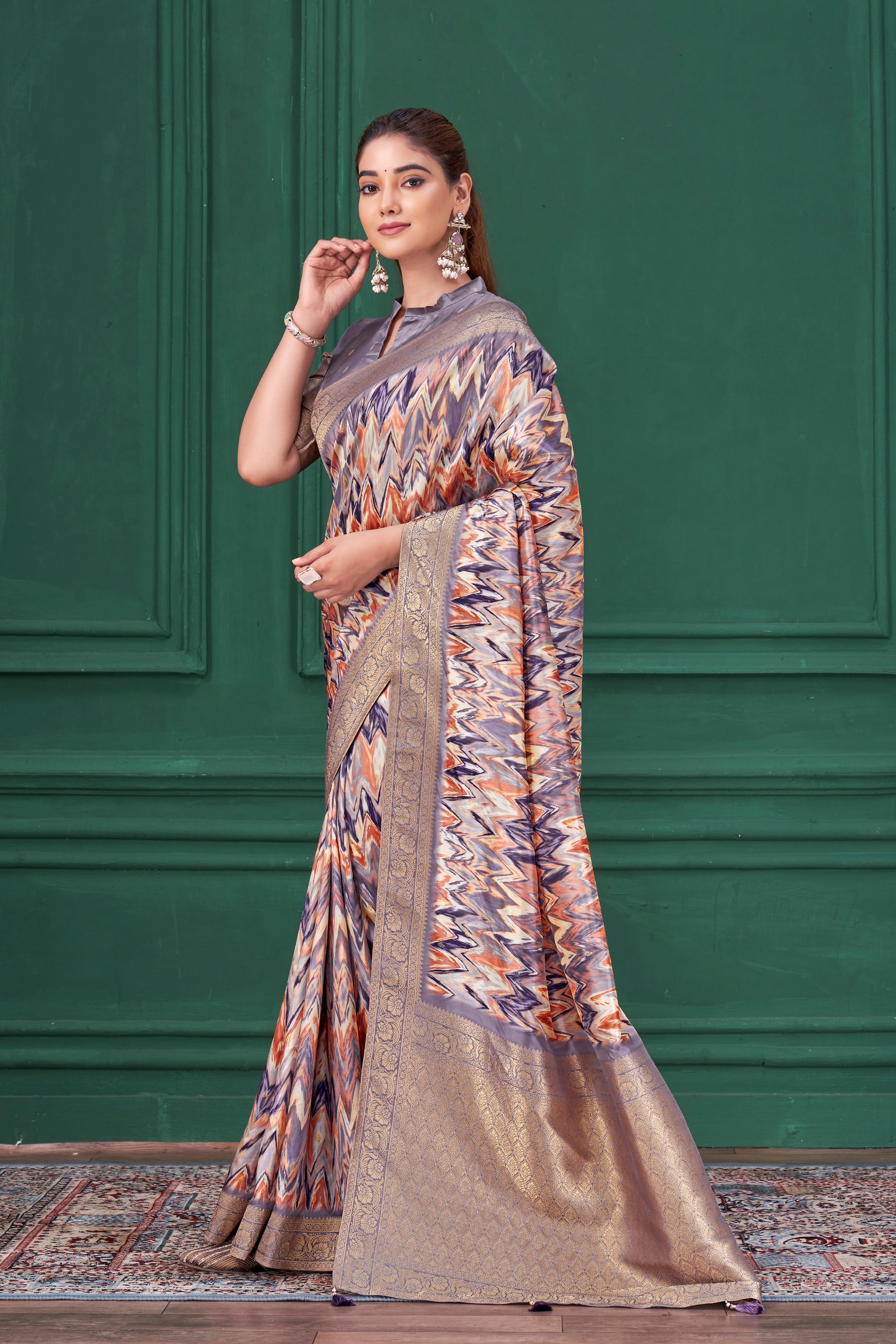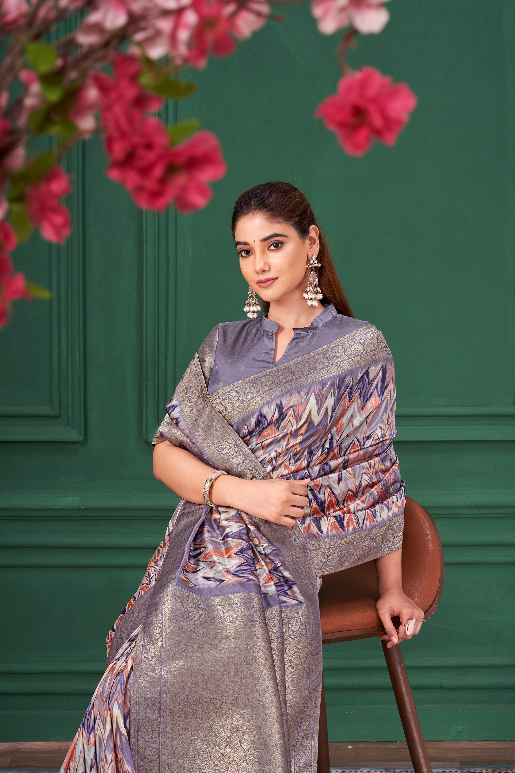 Purple Color Tussar Silk Fabric Woven Designer Saree With Beautiful Print Design
