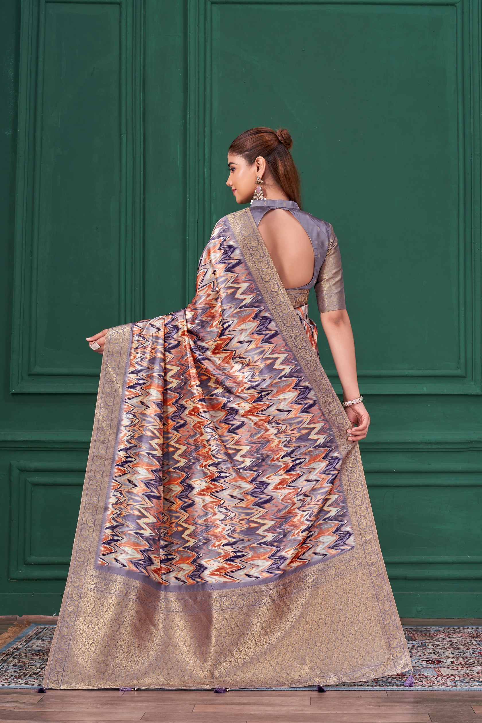 Look Attractive These Designer Party Wear Saree in Fine Colored.These Saree Are Tussar Silk And Blouse Tussar Silk is Fabricated.Its Beautified Woven Jacquard Pallu Border Desiger With Digital Printed.