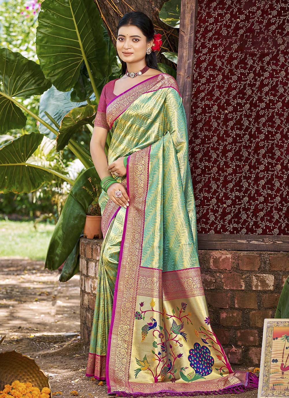 Rama Color Kanjivaram Silk Woven Jari Designer Ethnic Saree