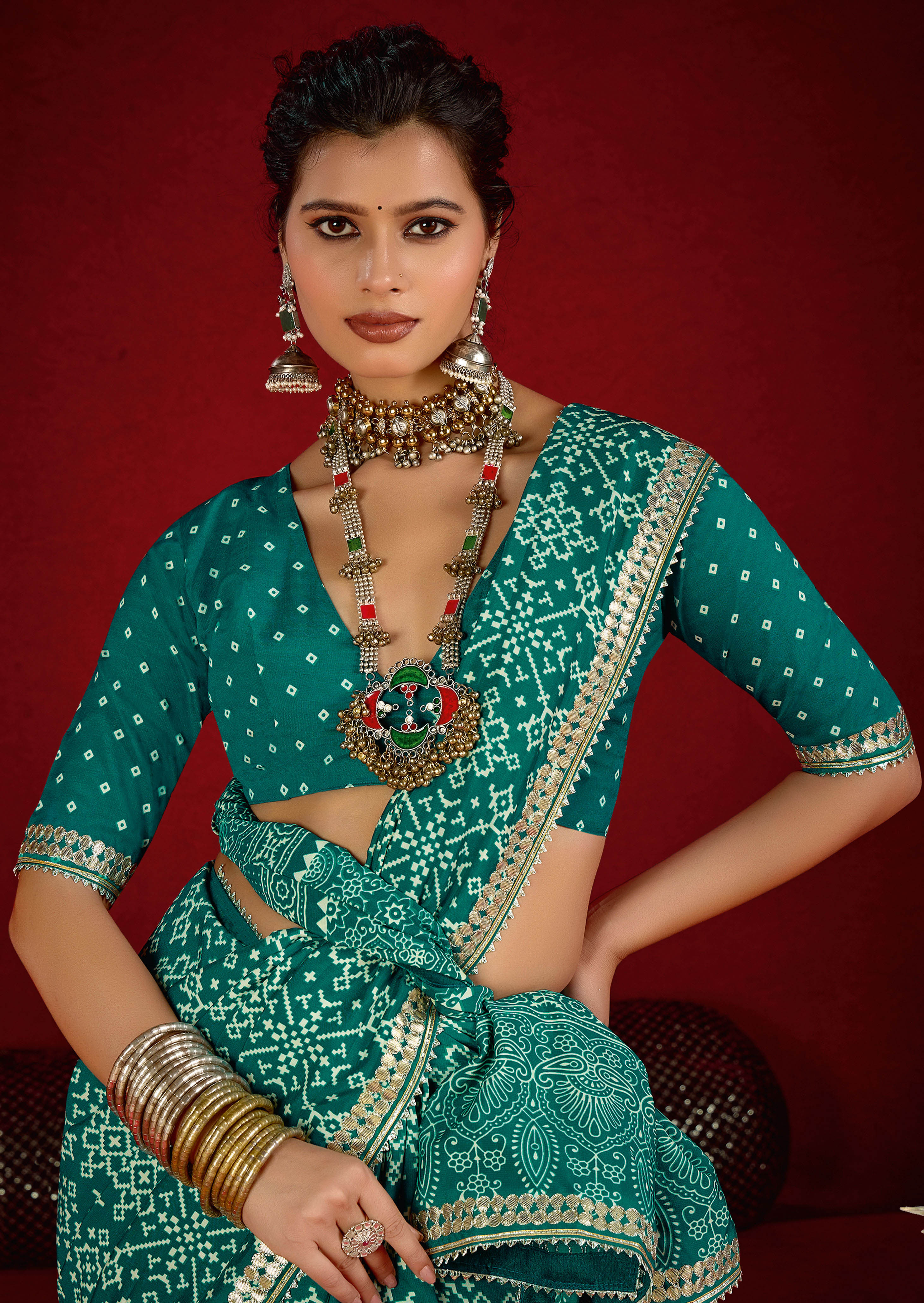 Rama Color Velvet Tussar Silk Beautiful Partywear Saree