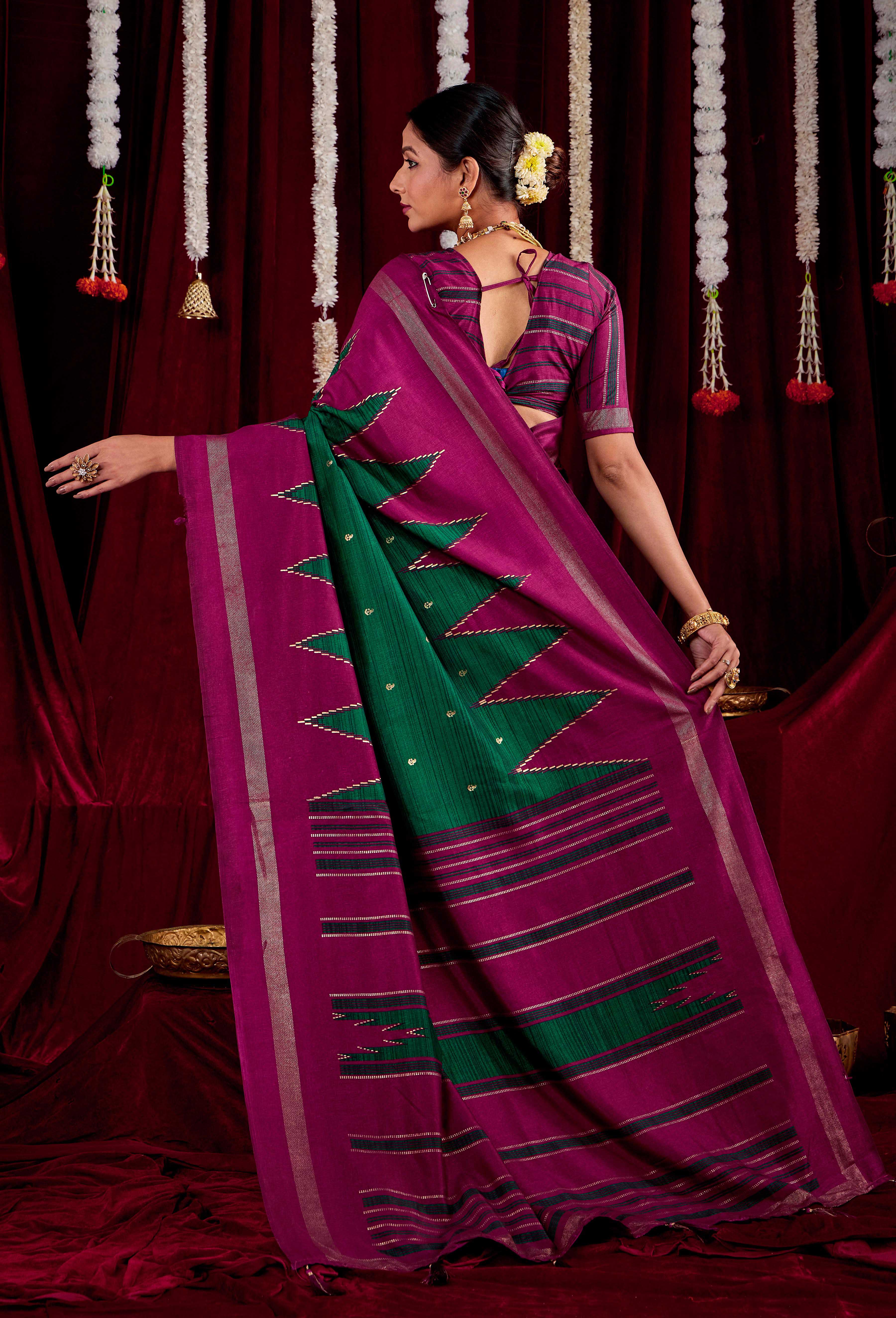 Rani Pink & Green Color Ikkat Silk Fabric Designer Zig Zag Printed Traditional Party Looks Saree