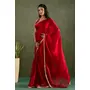 Red Color Chiffon Fabric Ready To Wear Designer Solid Partywear Saree
