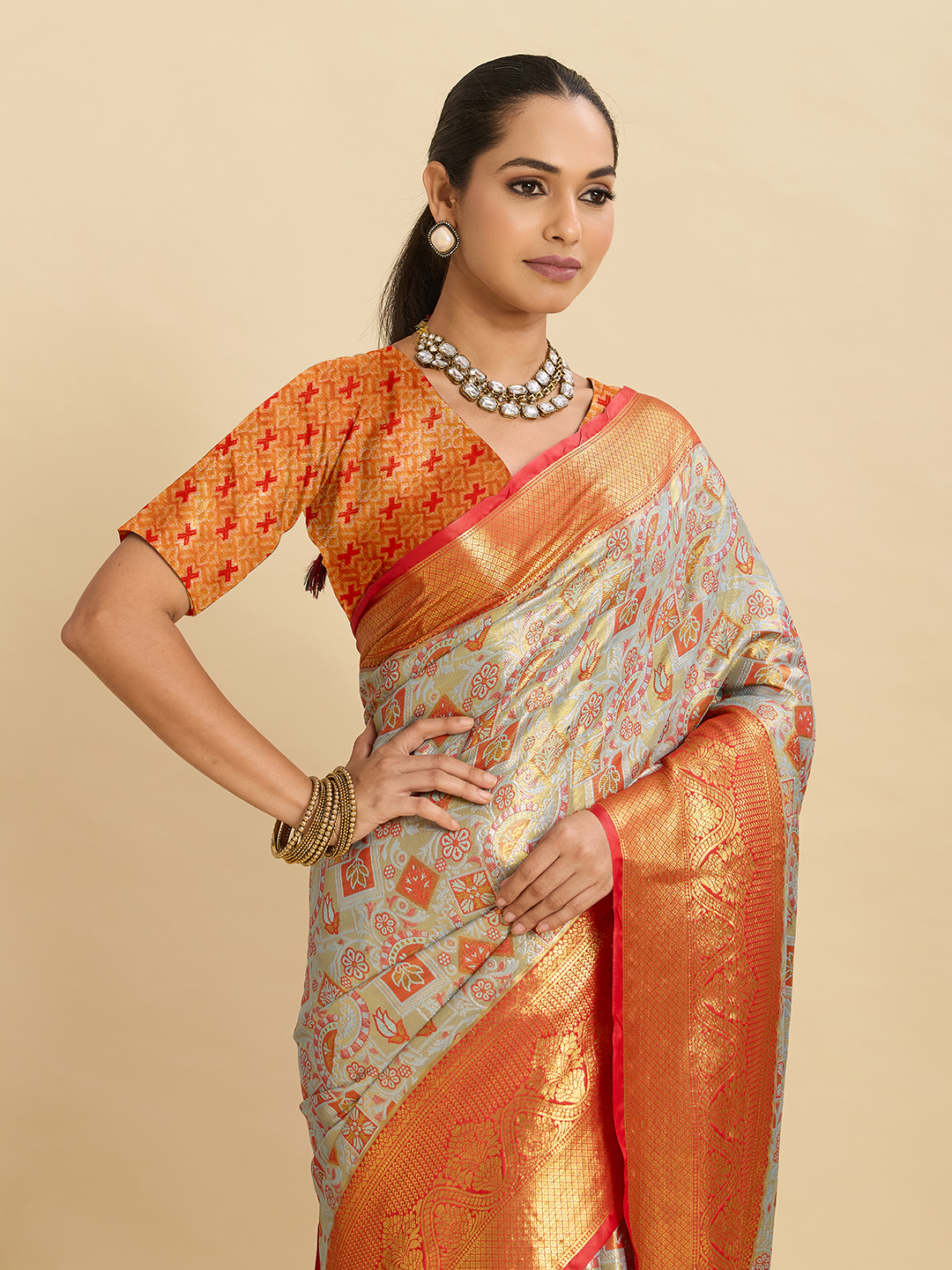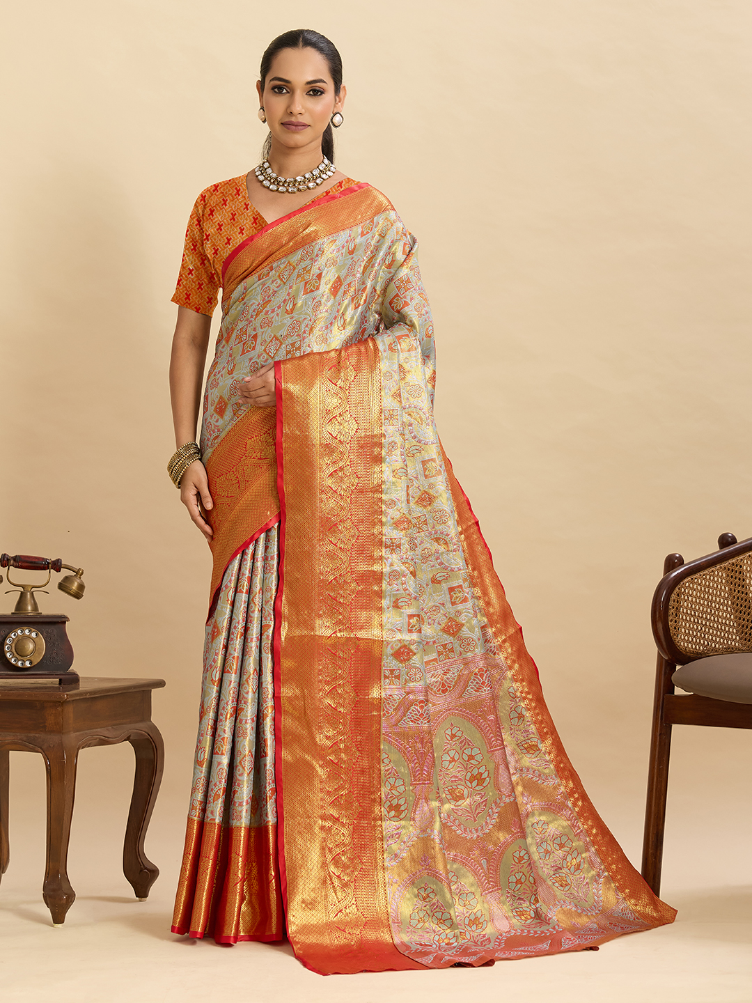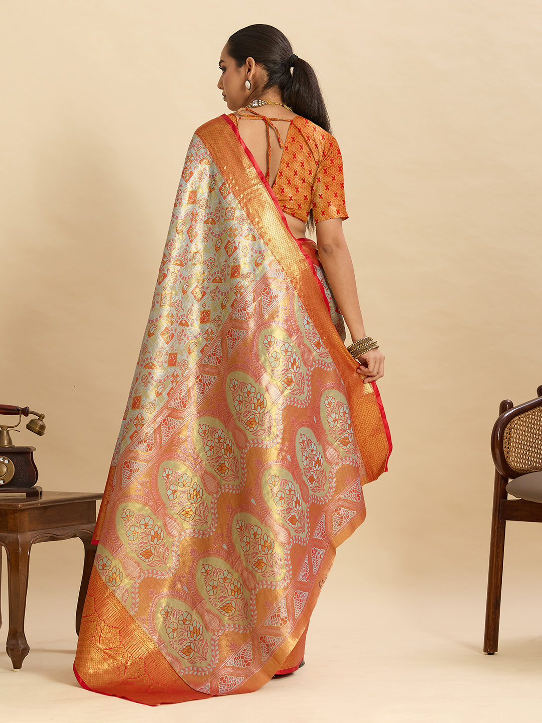 Looking This Party Wear Saree Paired With Blouse.This Saree And Blouse Are Silk Fabric With Woven Designer. Buy This Pretty Saree Now.