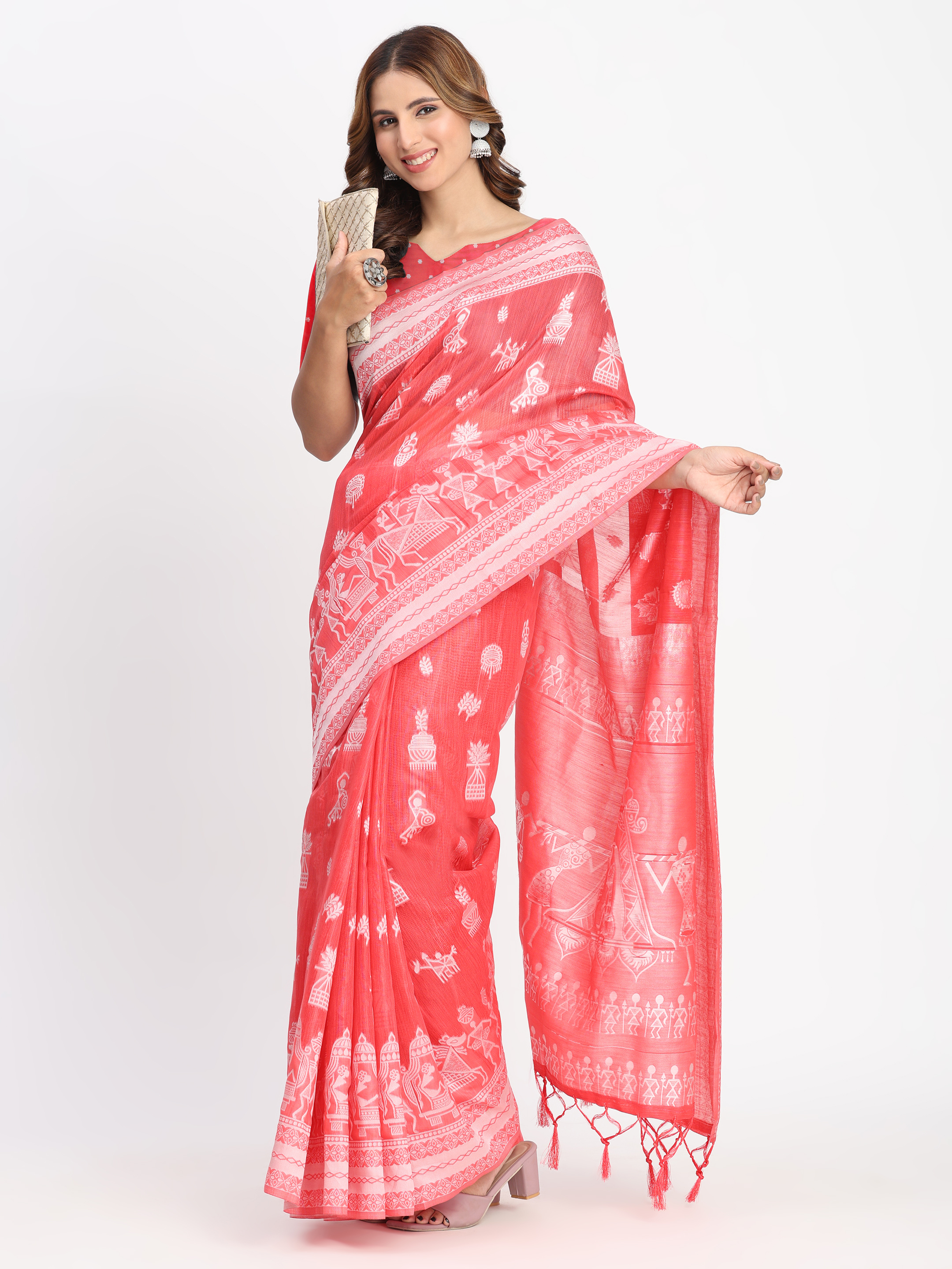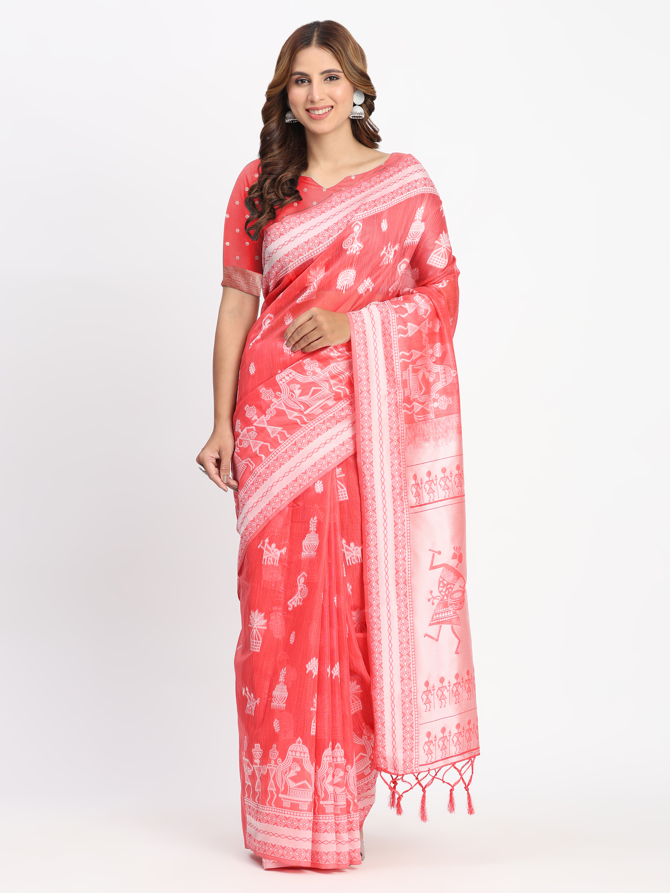 Red Color Linen Cotton Woven Designer Graceful Ethnic Saree