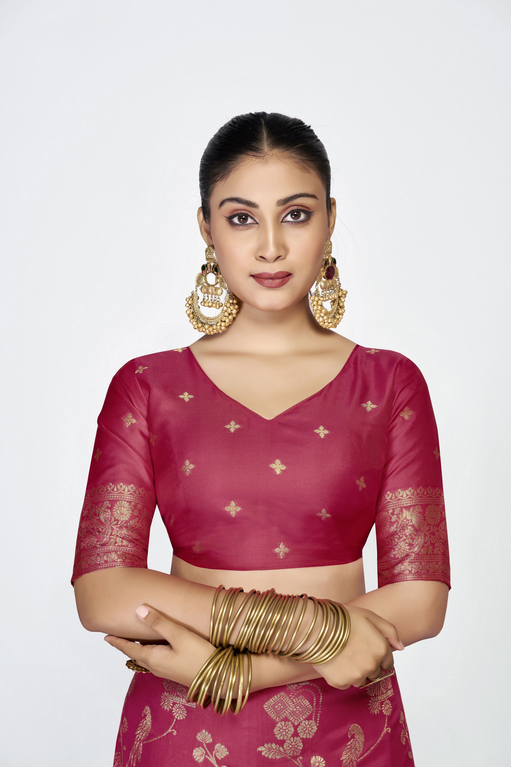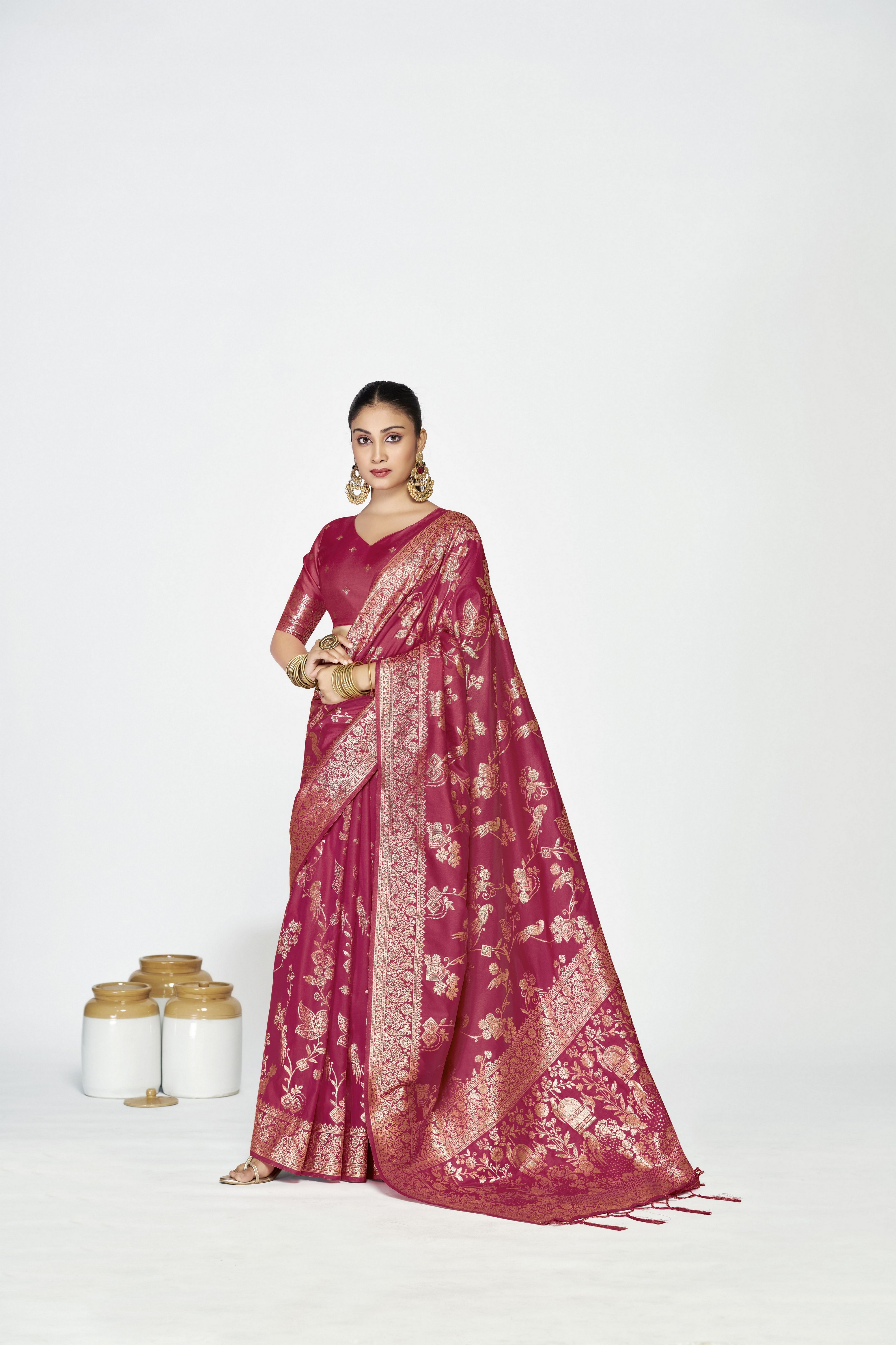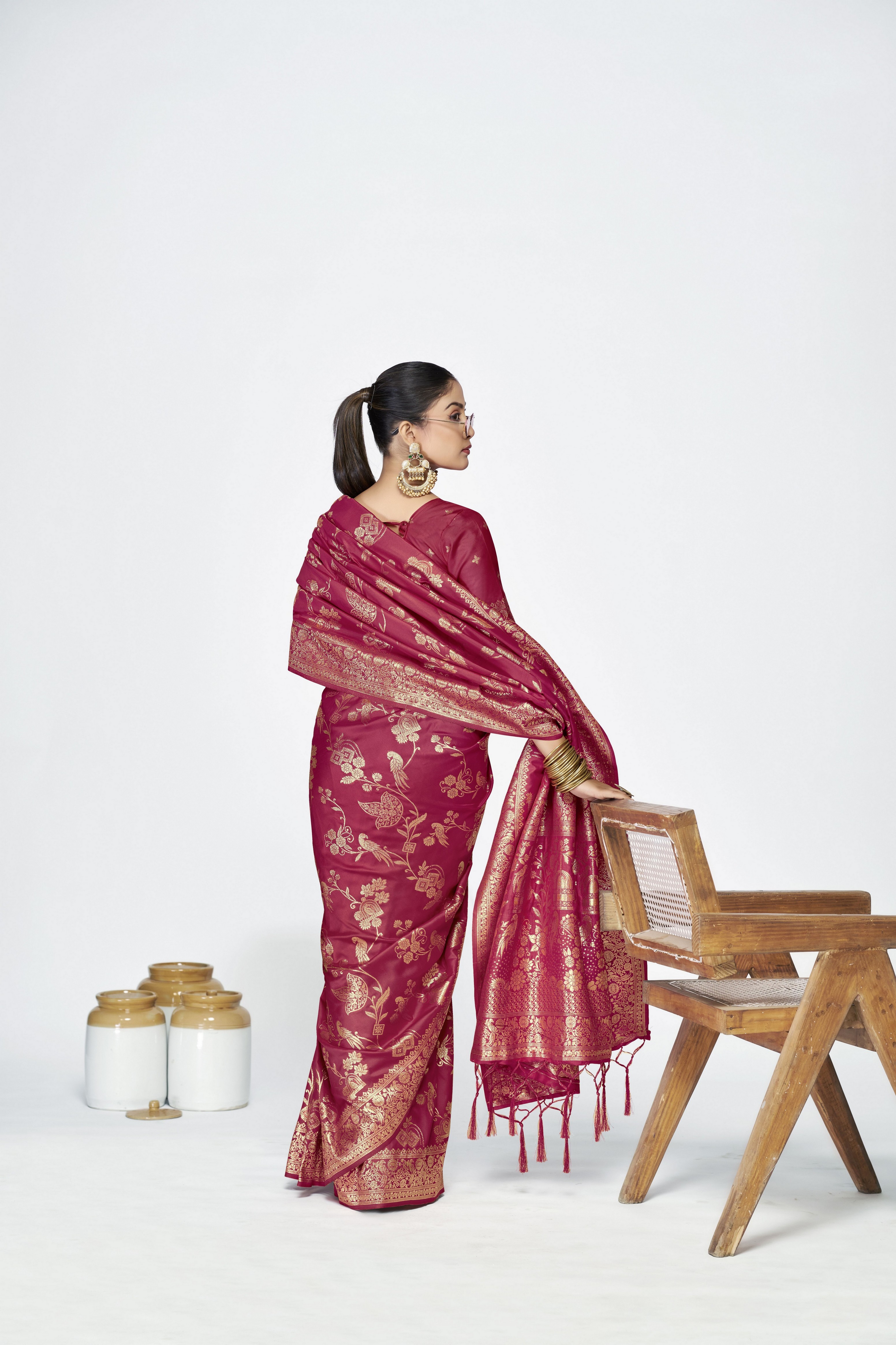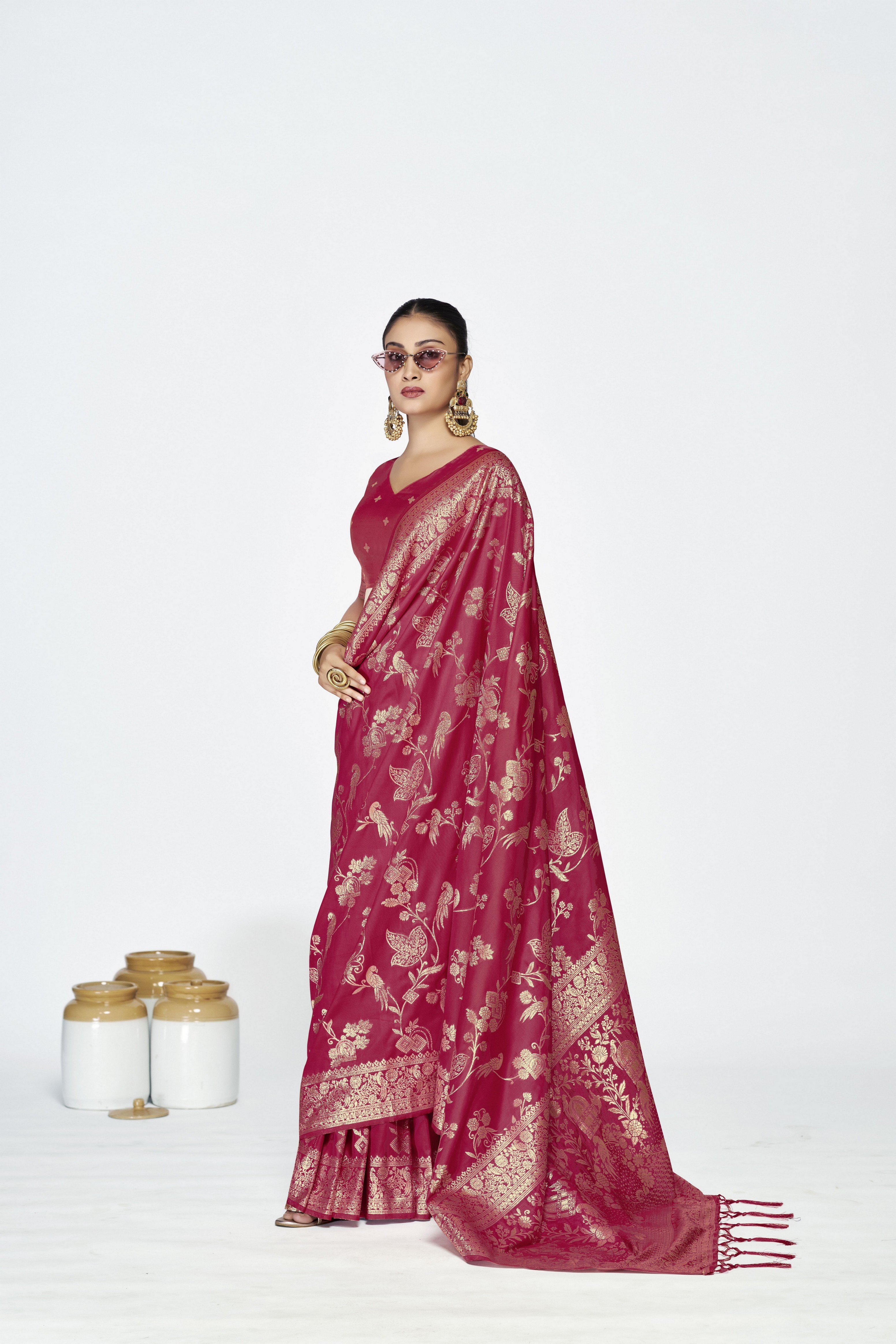 Rose Pink Color Banarasi Silk Fabric Woven Jari Designer Ceremonial Partywear Saree