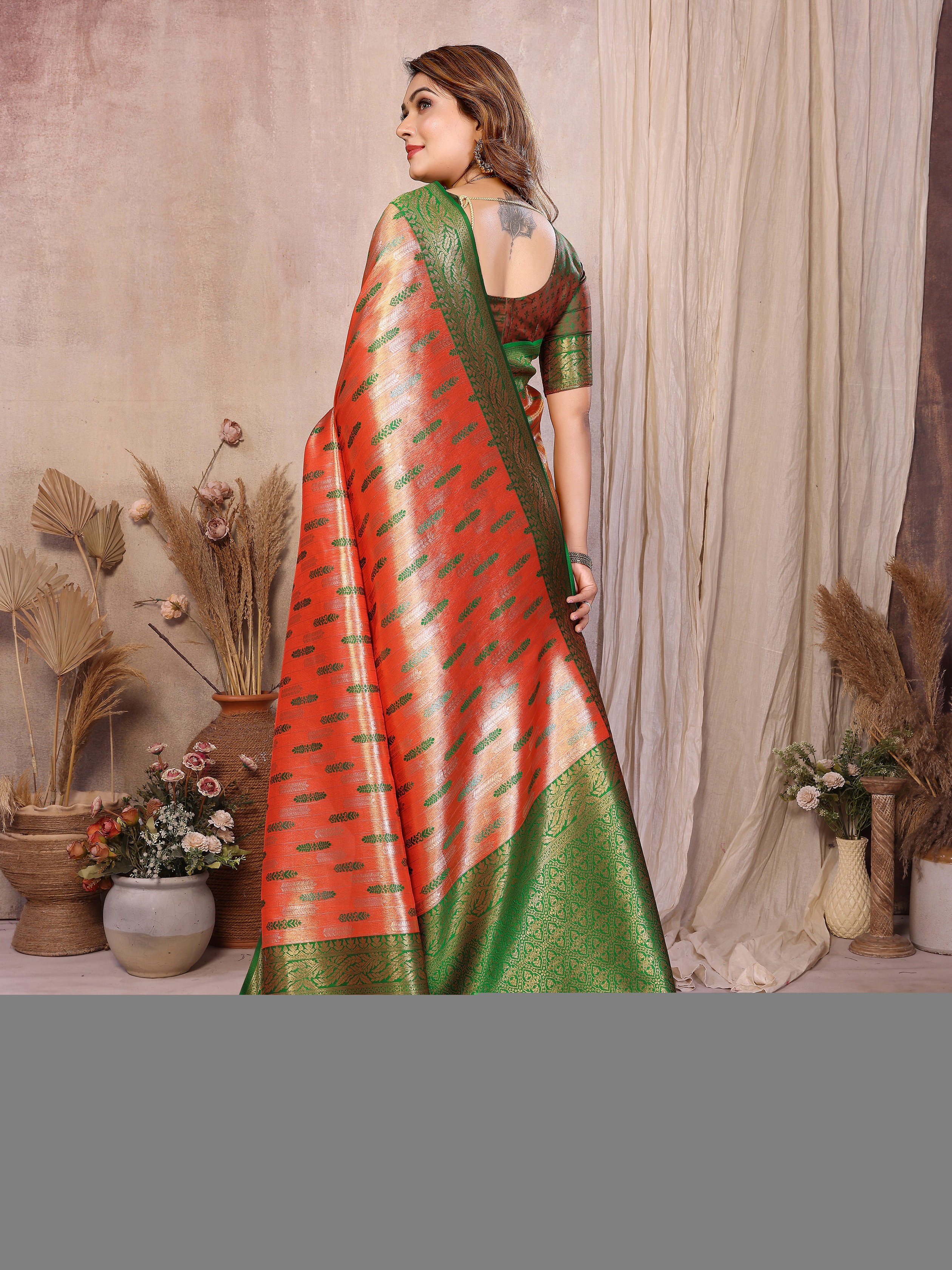 Rust Color Beautiful Banarasi Tissue Silk Rich Sophisticated Saree