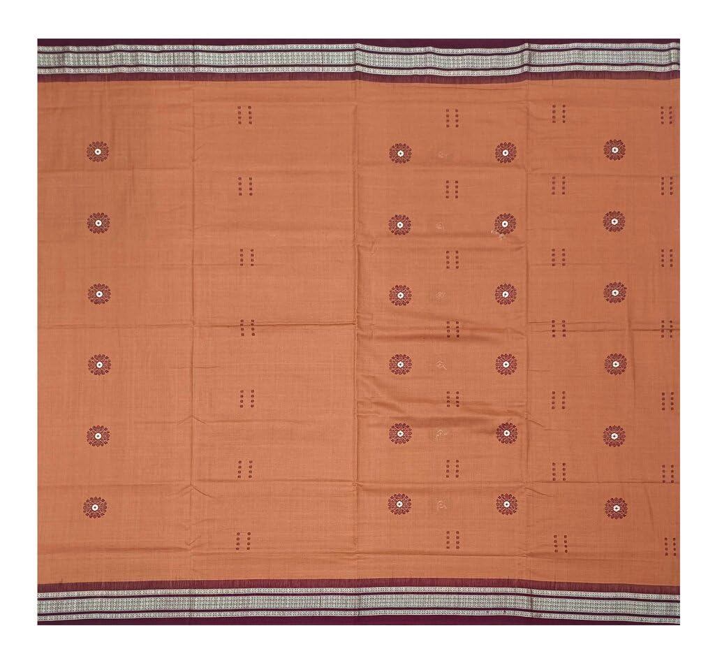 SAMBALPURI BANDHA CRAFT sambalpuri bomkai cotton saree with blouse piece(Padam motifs in brown color base)