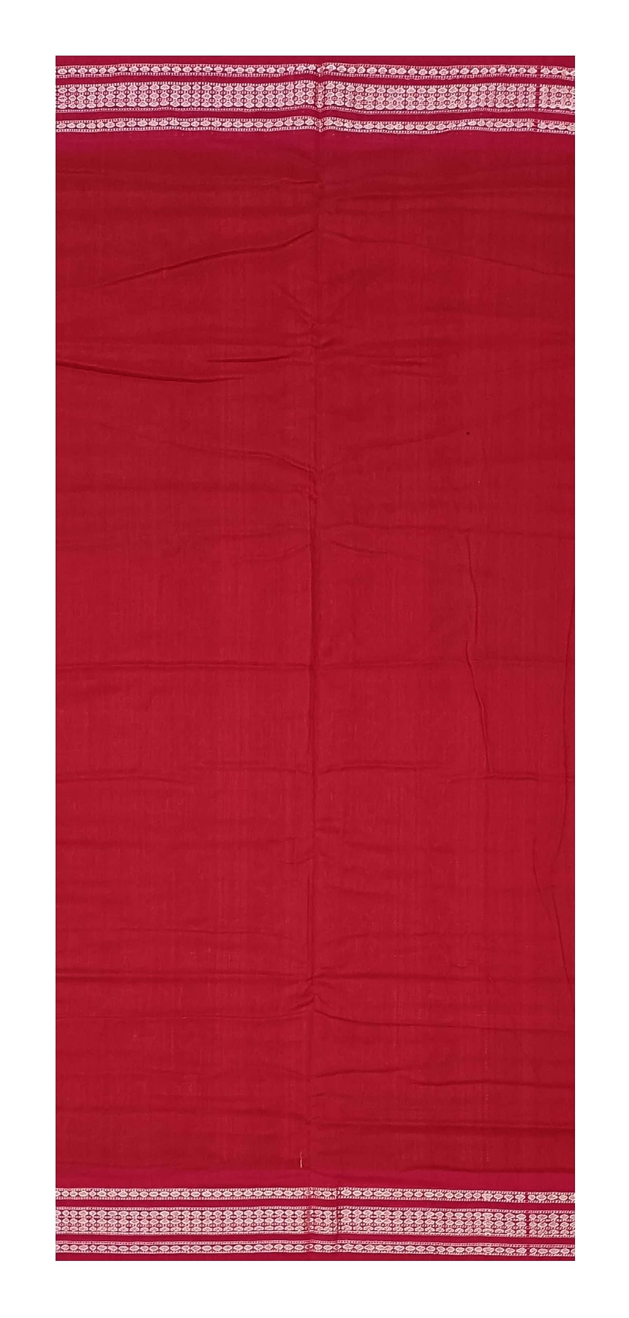SAMBALPURI BANDHA CRAFT sambalpuri bomkai cotton saree with blouse piece(Pasapali design in blue red and light peach colors combination)