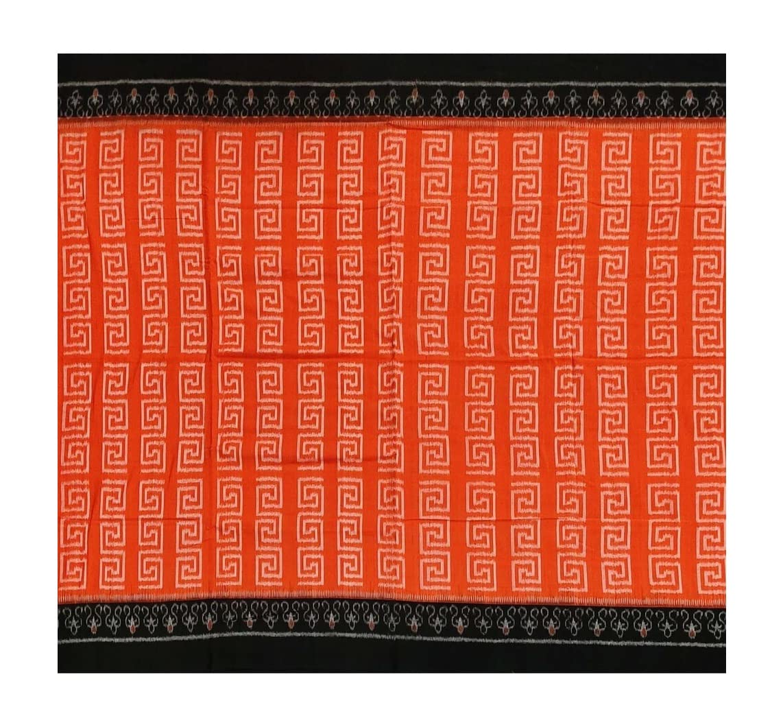 SAMBALPURI BANDHA CRAFT sambalpuri cotton saree with blouse piece(Orange color)