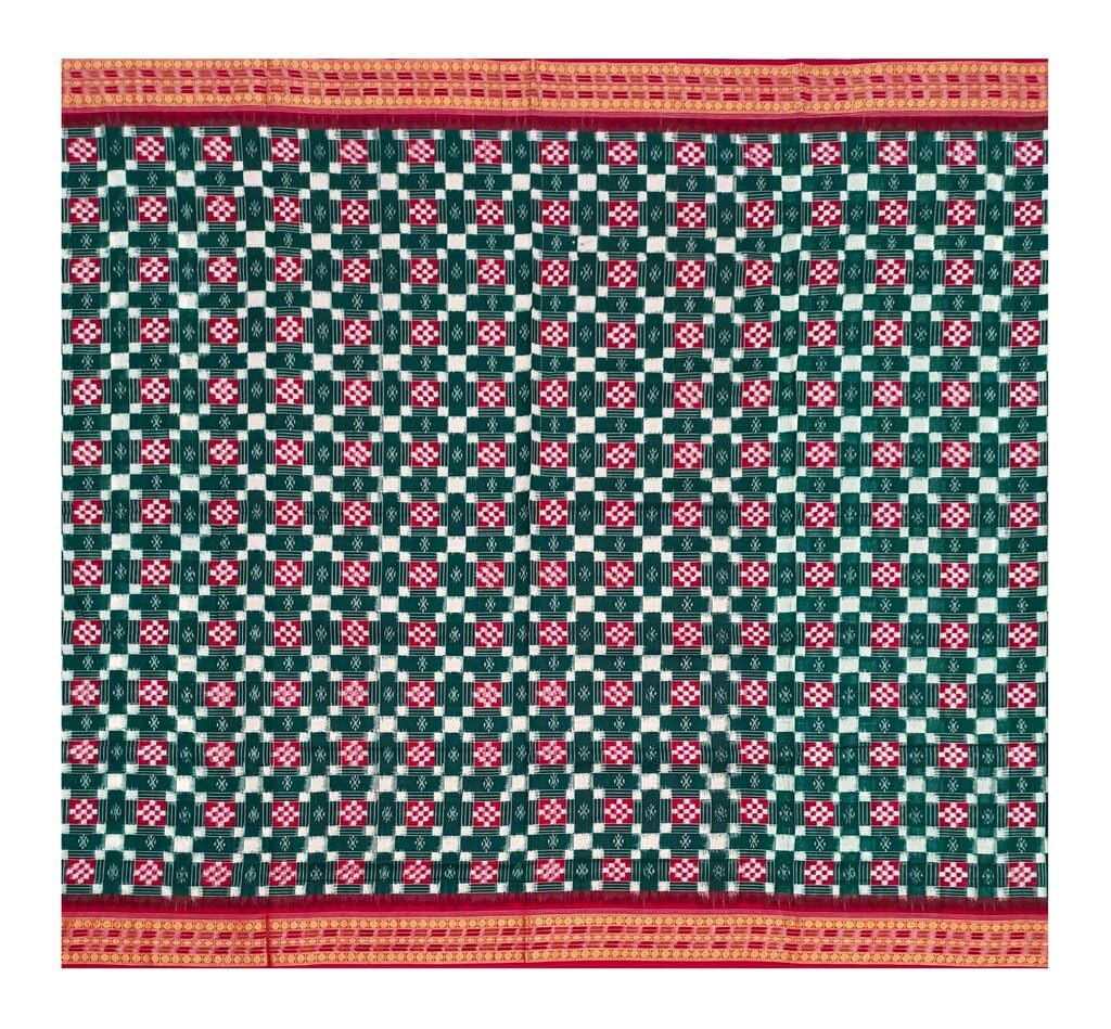 SAMBALPURI BANDHA CRAFT sambalpuri cotton saree with blouse piece(Pasapali design in green red white colors combination)