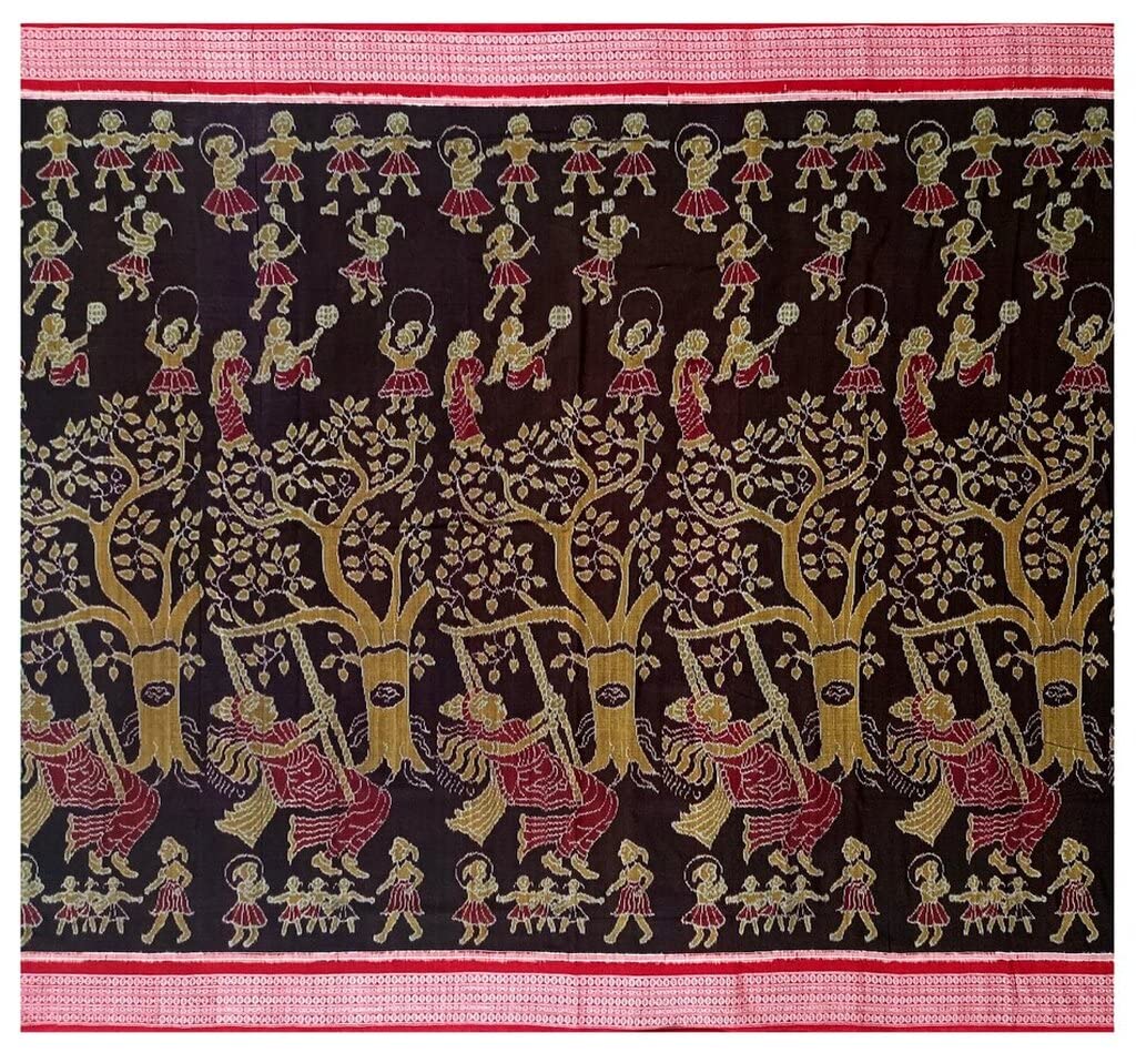 SAMBALPURI BANDHA CRAFT Sambalpuri cotton saree with blouse piece(SCSR92 Raja doli Design in Coffee color base)