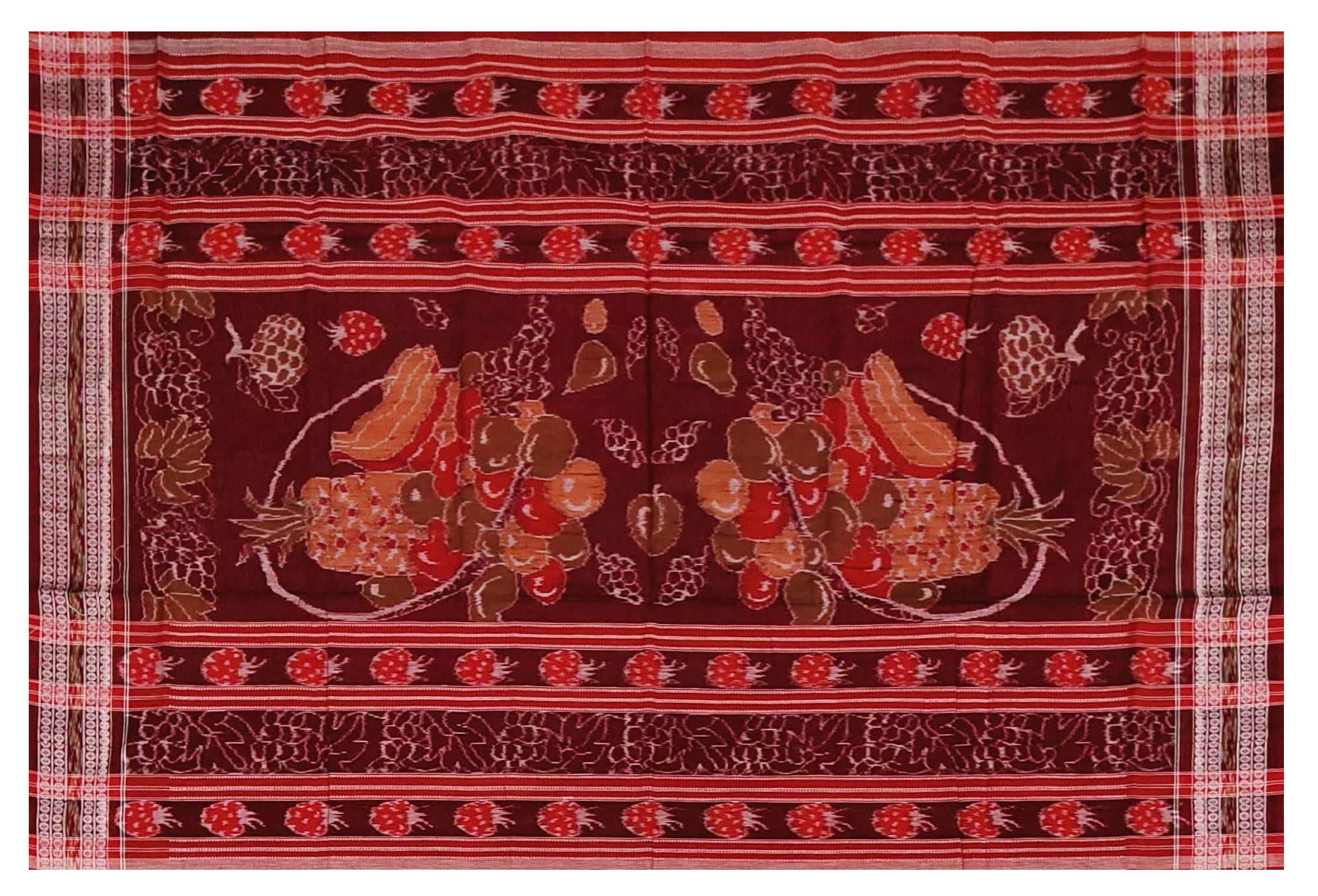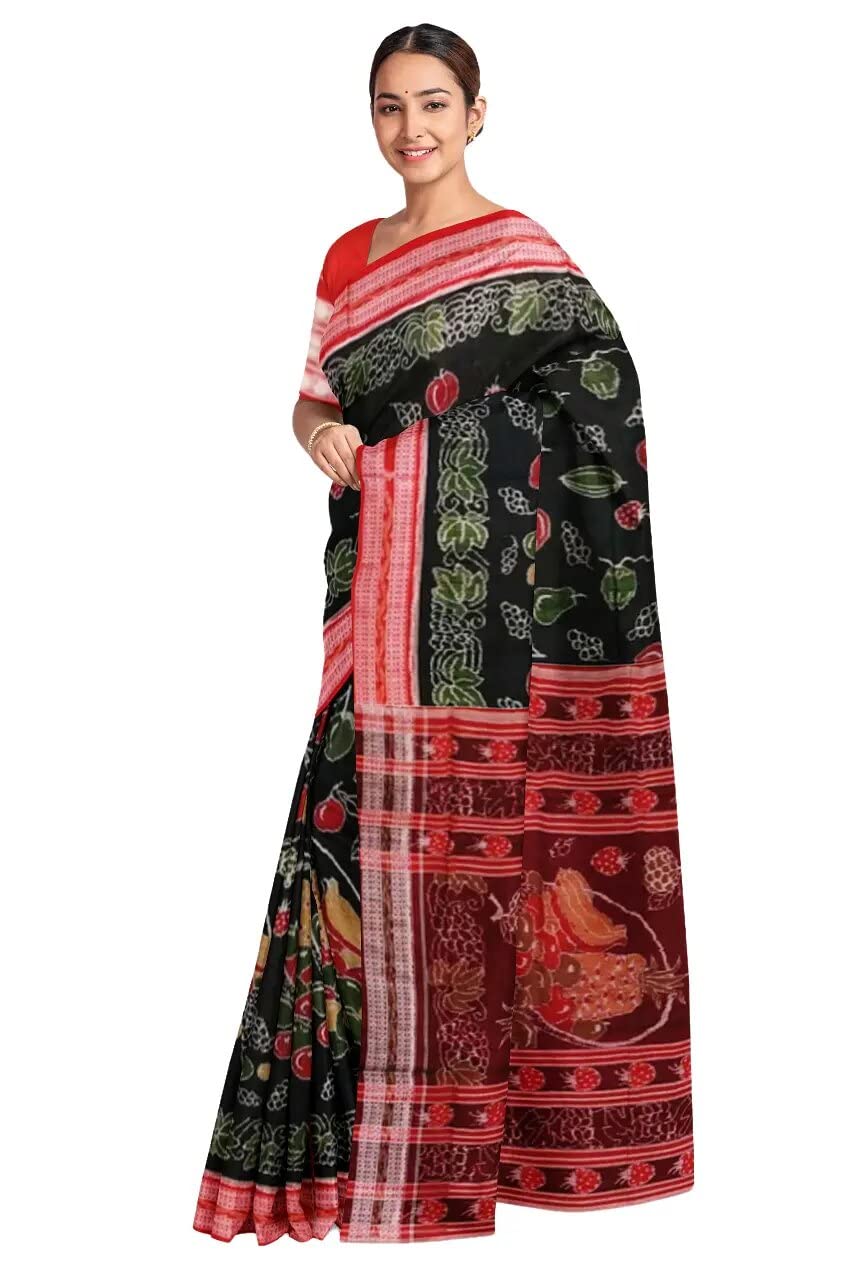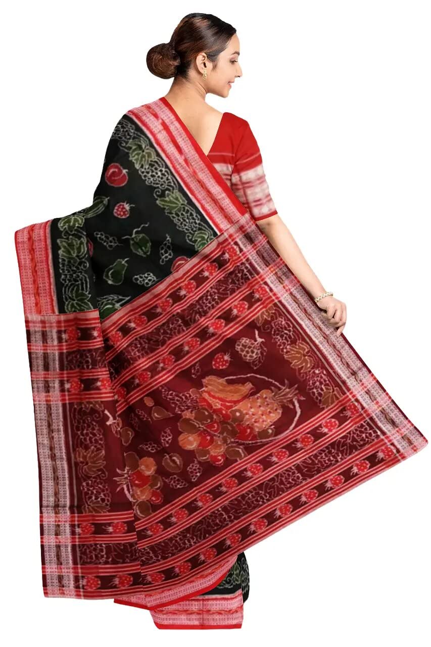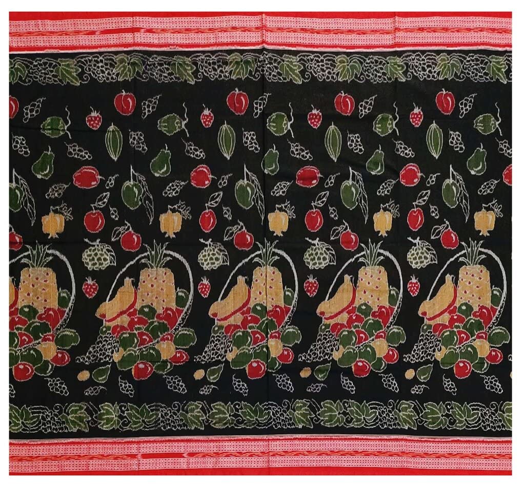 Sambalpuri cotton saree with blouse piece(Fruits design in black color base)