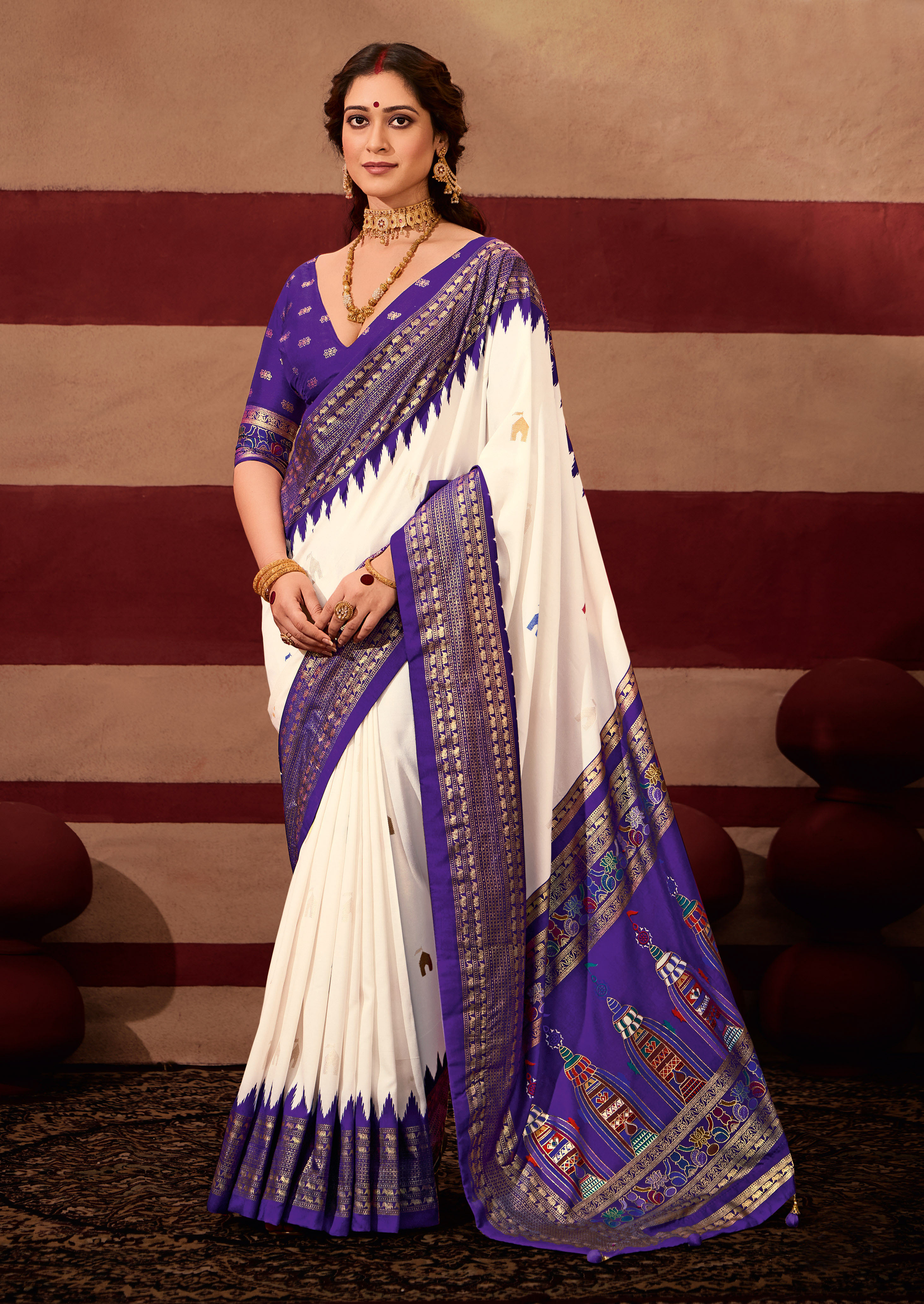 Sambhalpuri Foil Printed Purple Color Velvet Tussar Silk Fabric Sophisticated Saree