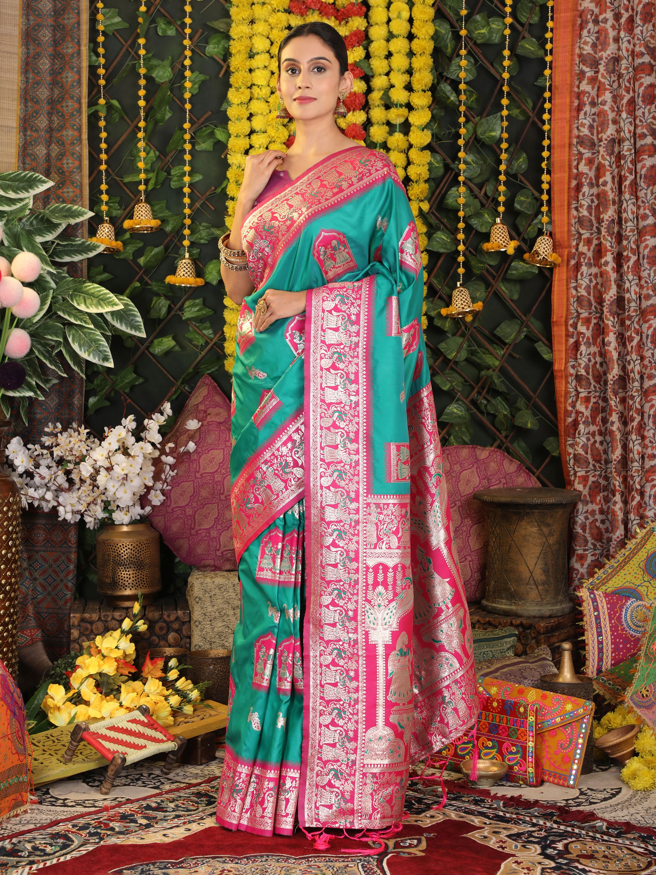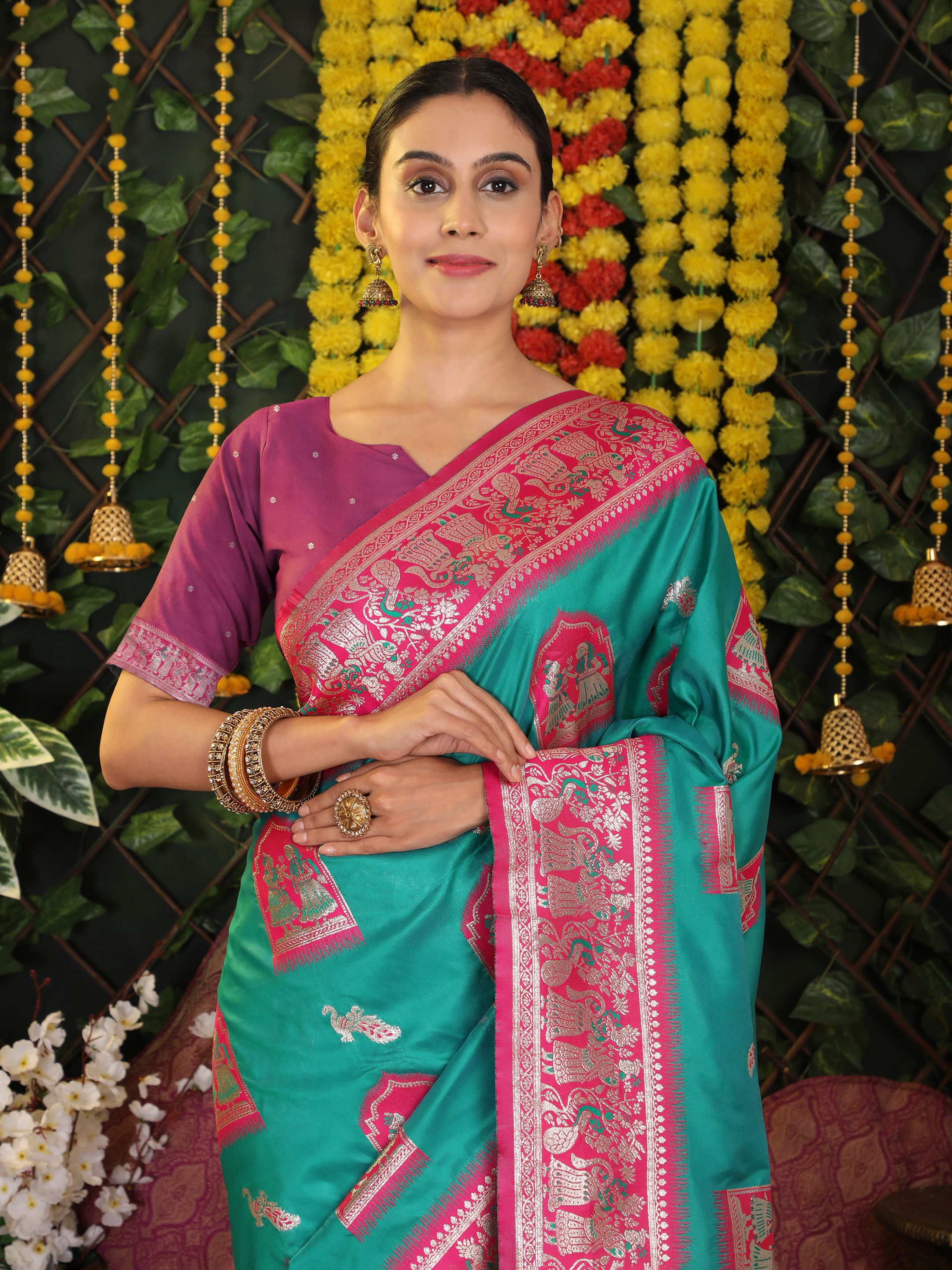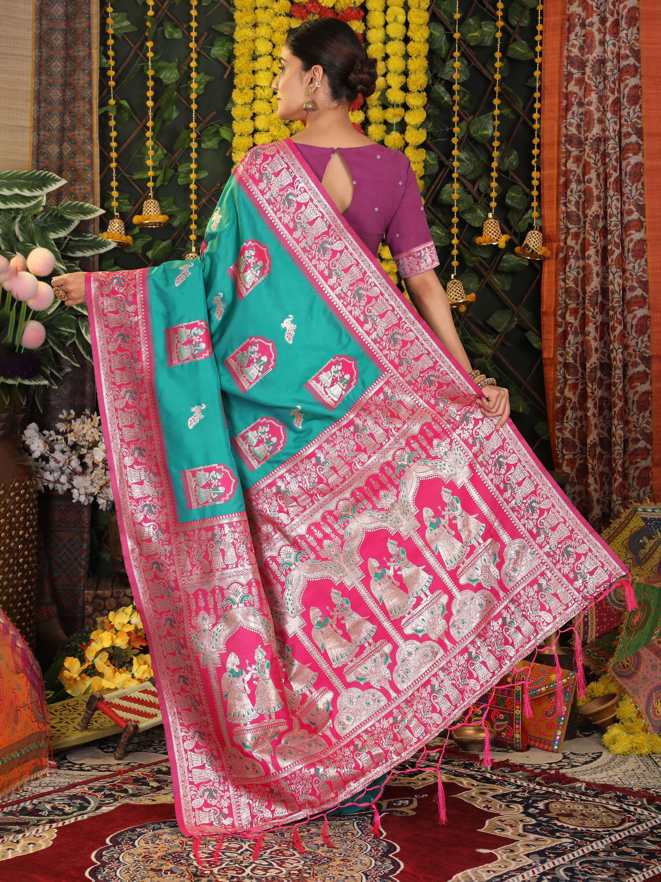 Sea Green Color Blended Silk Fabric Woven Jari Designer Saree