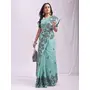 Sea Green Color Linen Cotton Fabric Wevon Thread Designer Festive Sophisticated Saree