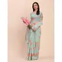 Sea Green Color Linen Cotton fabric Woven Border Saree With Smart Print Designer Looks