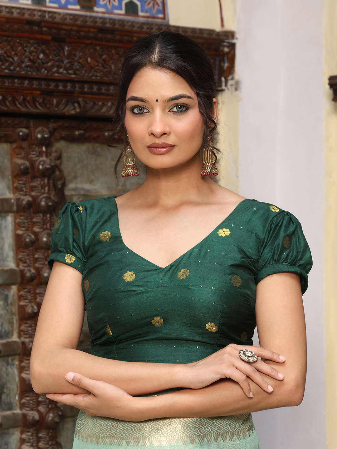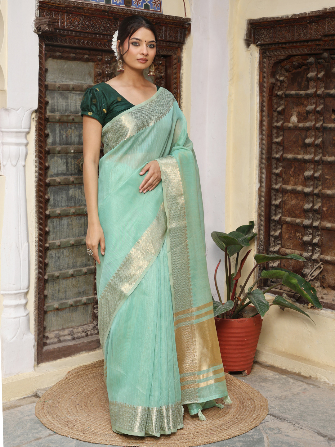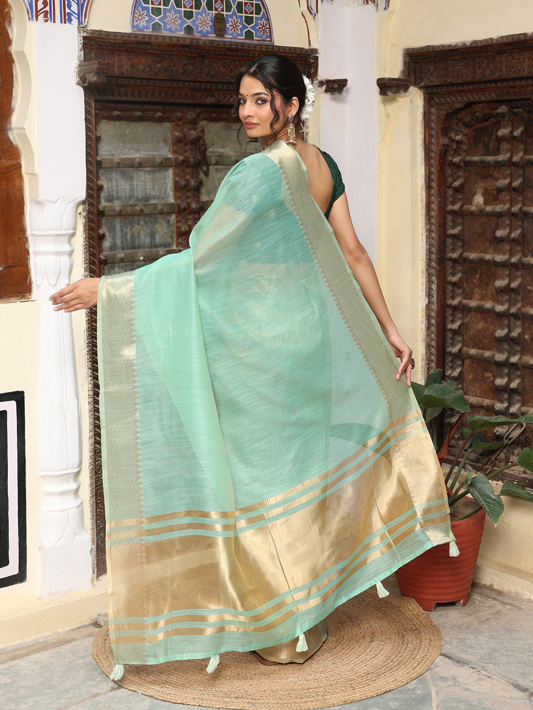 Sea Green Color Rich Ethnic Cotton Based Saree with Rich Woven Designer Looks