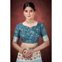 Sea Green Color Smart Partywear Kantha Jari Silk Traditional Print Saree