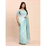 Sky Blue Color Linen Cotton Fabric Woven Designer Saree